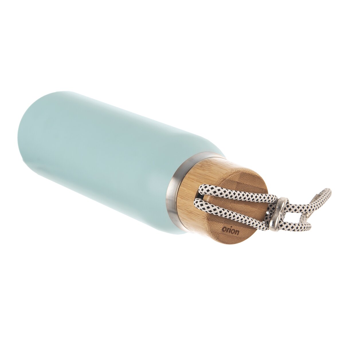 Kód produktu 830638Svetlomodrá nerezová termofľaša v modernom dizajne, s objemom 0,6 l, je vhodná do práce, do školy, na výlety aj na doplnenie tekutín pri športe. Bezpečne ju uzatvára bambusovo-plastové viečko so silikónovým tesnením a nylonovým povrázkom.
