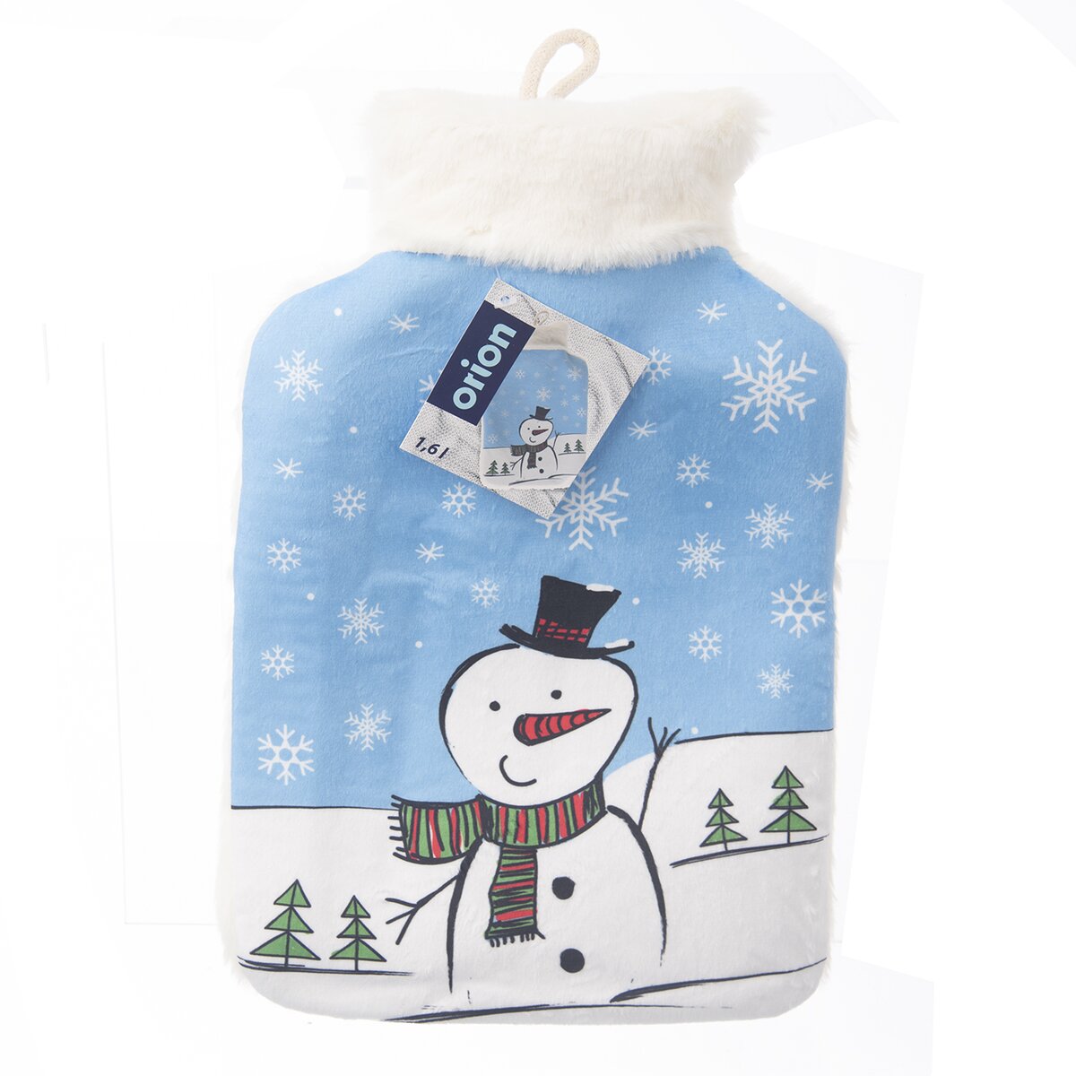 Tento termofor tvorí klasická gumová fľaša s výlevkou, zaistenou skrutkovacím uzáverom. Je vložená do plyšového obalu z polyesteru. Motív usmievavého snehuliaka je originálny a roztomilý.
