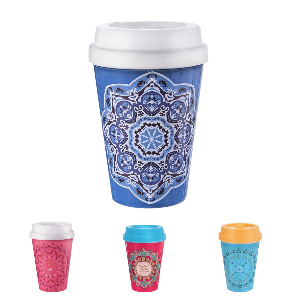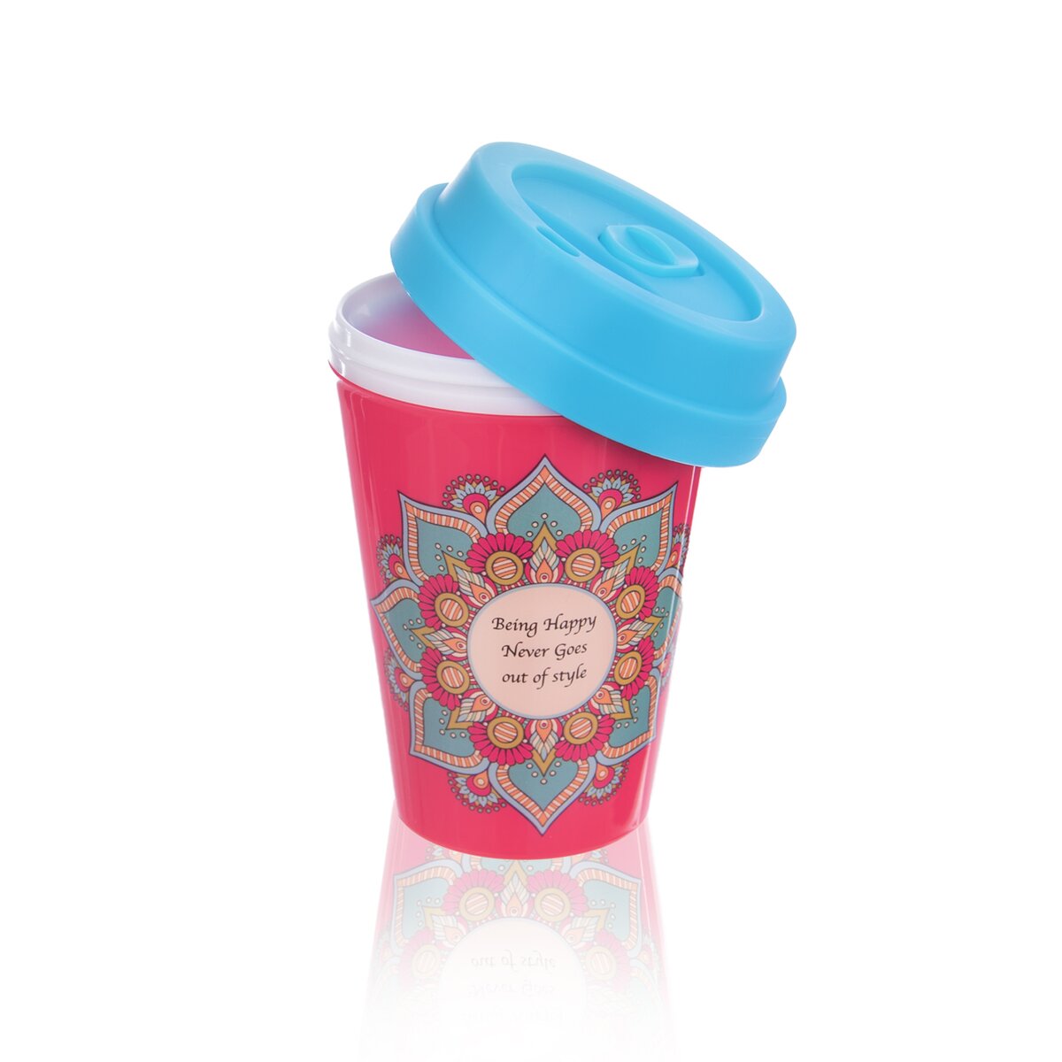 Kód produktu 112262Uzatvárateľný plastový termohrnček s objemom 0,3 l s dekorom MANDALA.