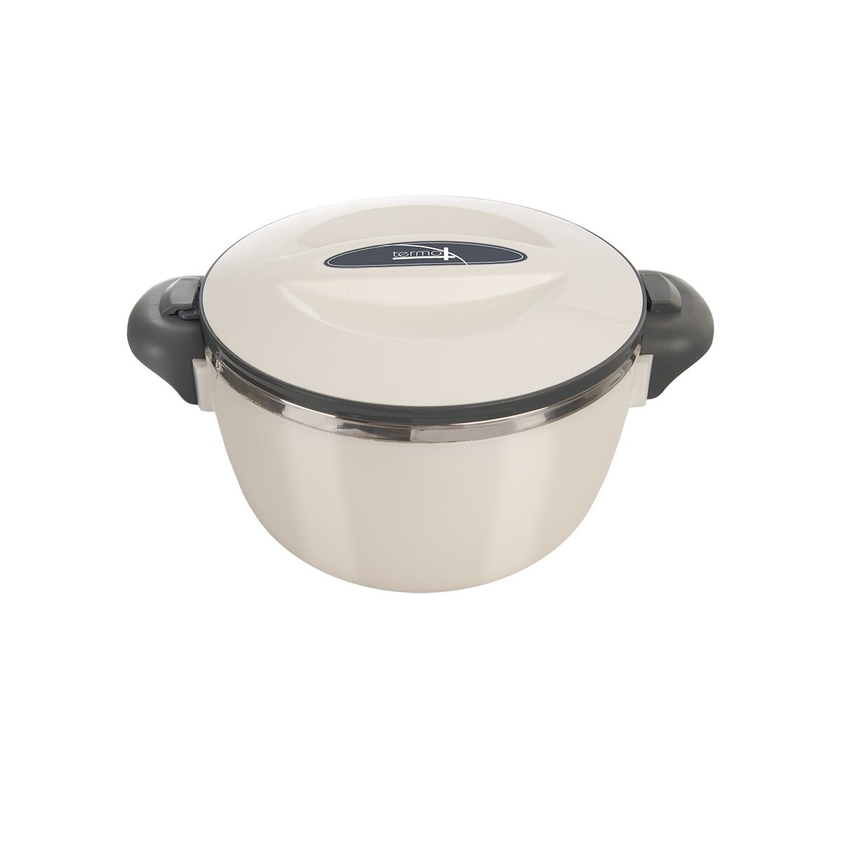 Kód produktu 128519Praktická biela plastová termomisa TERMO má celkový objem 1,1 l. Je opatrená hladkým nerezovým vnútrom a otočným termo viečkom. Slúži na uchovanie vložených teplých alebo studených pokrmov.