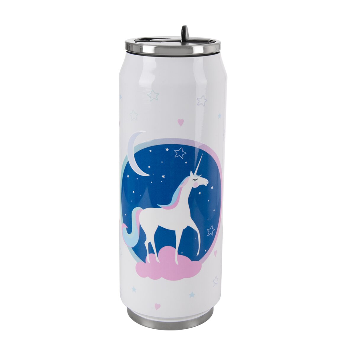 Kód produktu 124824Menšia nerezová dvojstenná termoplechovka JEDNOROŽEC s objemom 0,5 l udrží nápoje dlho studené alebo teplé. Má výklopný plastový náustok a tesniace viečko, čo príde vhod v škole, na výlete aj pri športe.
