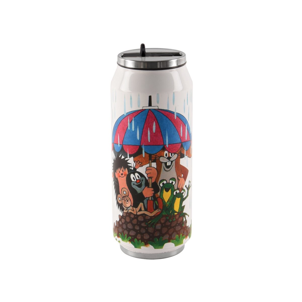 Kód produktu 125851Termoska v tvare plechovky je veľmi zaujímavá a nápaditá svojím tvarom. Udrží 12 hodín teplú a 8 hodín studenú vodu. Výklopný náustok vo viečku termosky. Viečko na závit so silikónovým tesnením. Materiál: nerez, plast. 3 varianty - Krtko. Rozmery: objem 0,4 l, pr. 6,5 cm, v. 17 cm.