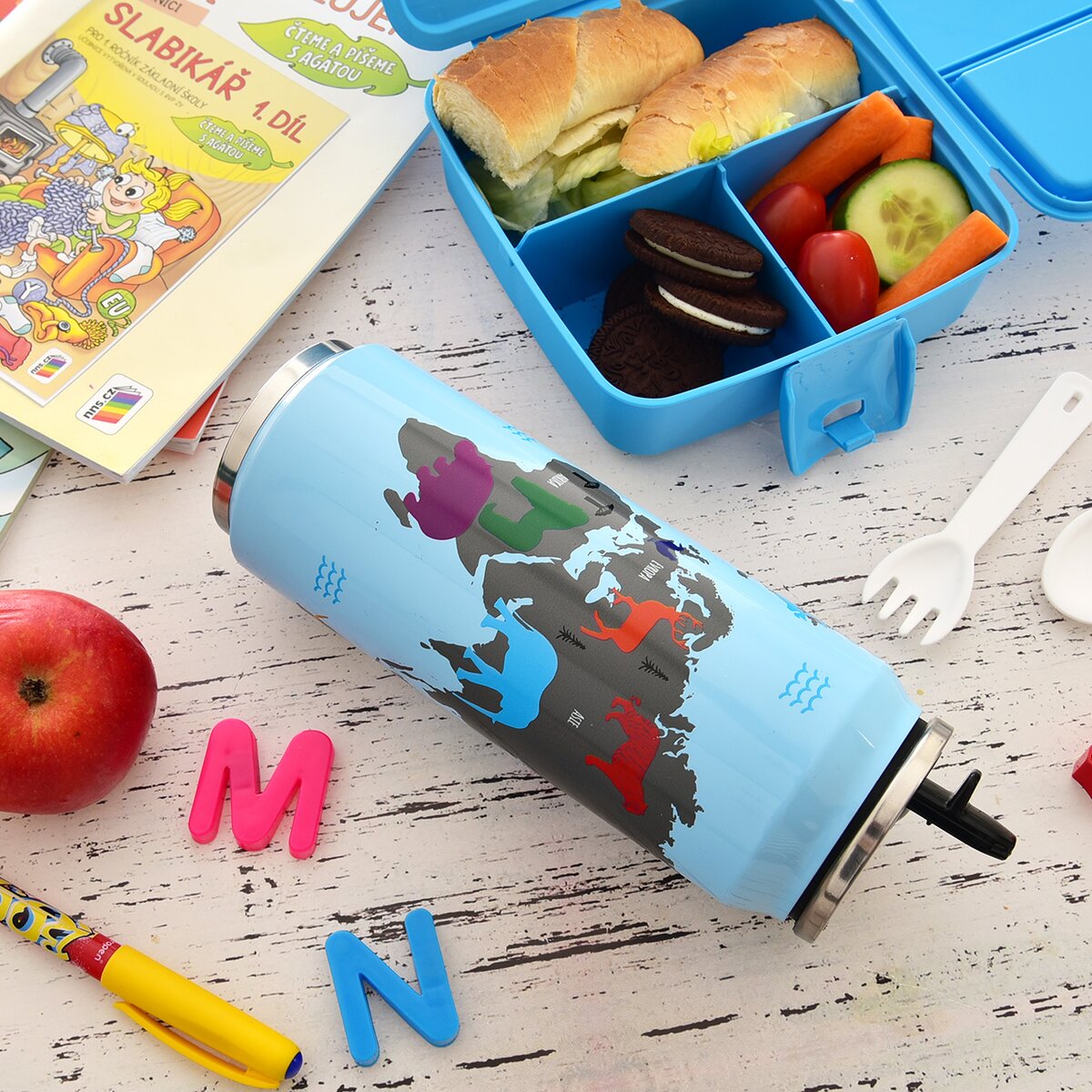 Viac informáciíModerná termoplechovka s motívom zemegule a zvierat, ktoré žijú na rôznych kontinentoch, poteší malých prírodovedcov. Navyše udrží až 12 hodín teplú a 8 hodín studenú vodu vďaka zdvojenej nerezovej stene.