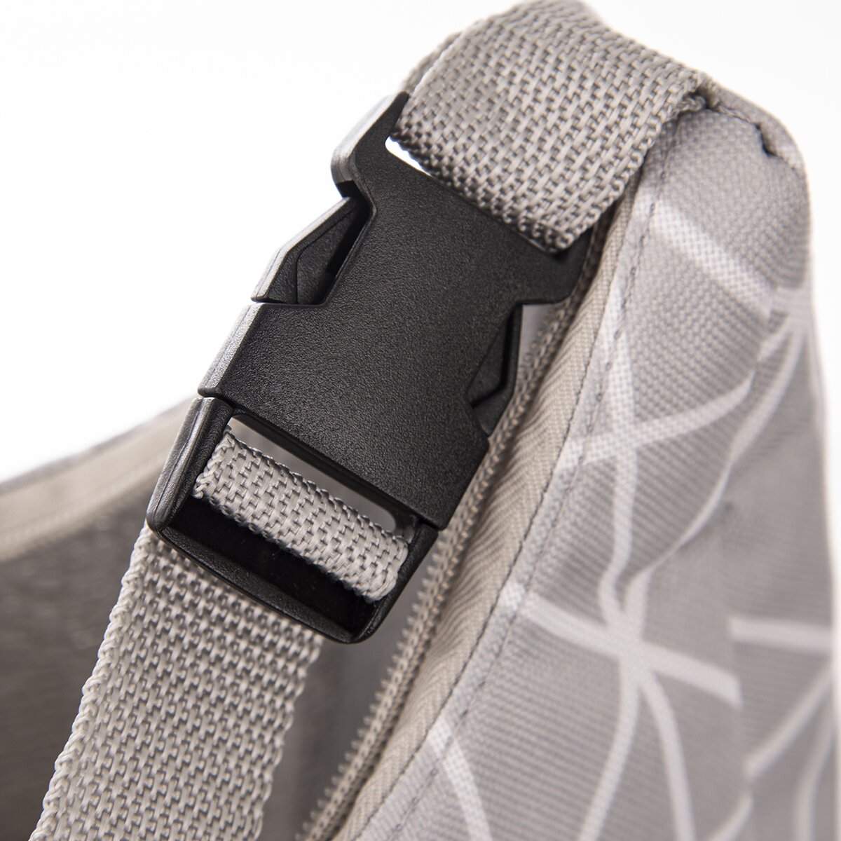 Taška má zatváranie na zips a nastaviteľné ucho na prenášanie v ruke aj na ramene.