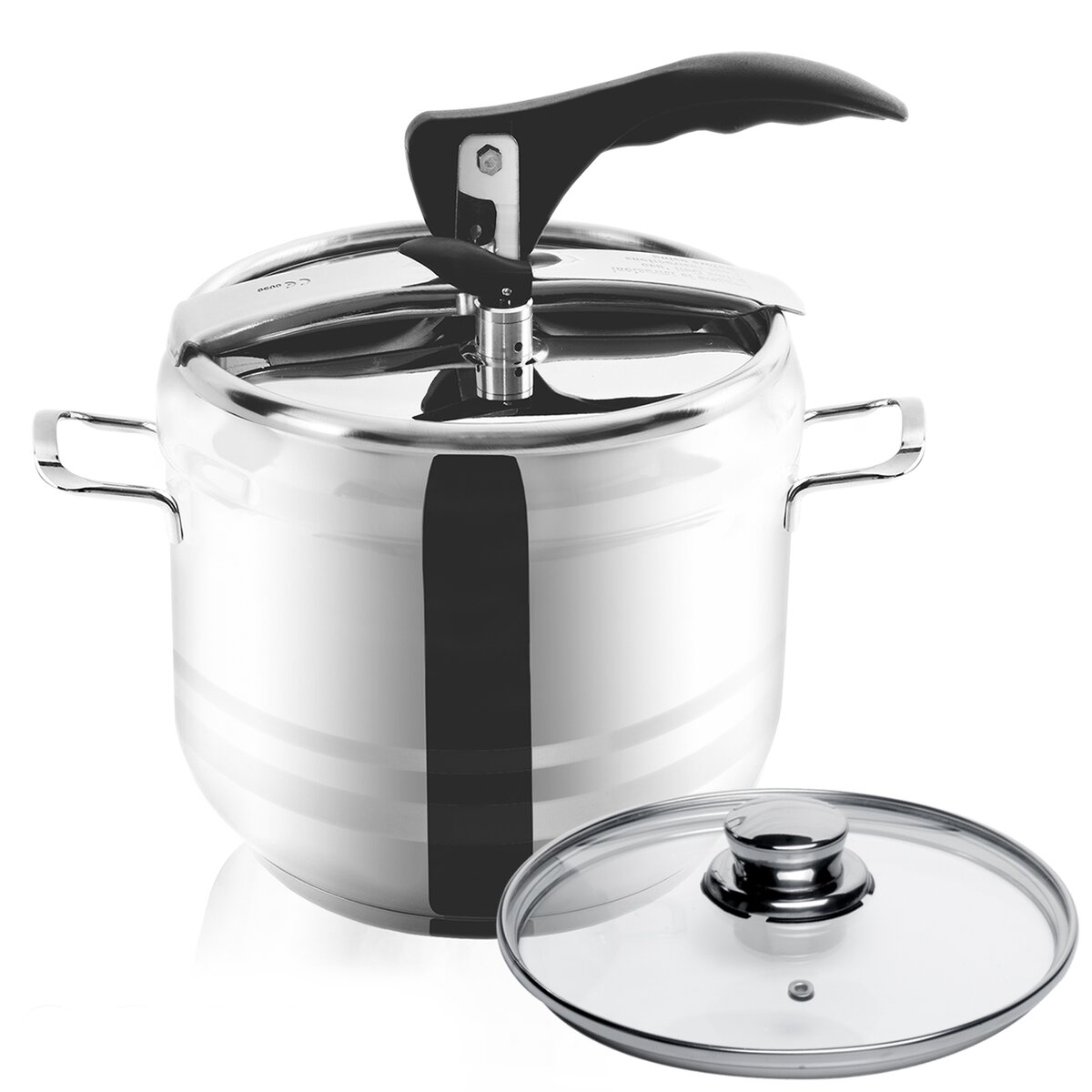 Kód produktu 111738Kvalitný tlakový hrniec s objemom 5 l s vekom s pákovým mechanizmom a tromi typmi bezpečnostných ventilov, vhodný pre rýchle varenie na všetkých typoch sporákov, vrátane indukcie. Je doplnený sklenenou pokrievkou pre bežné varenie.
