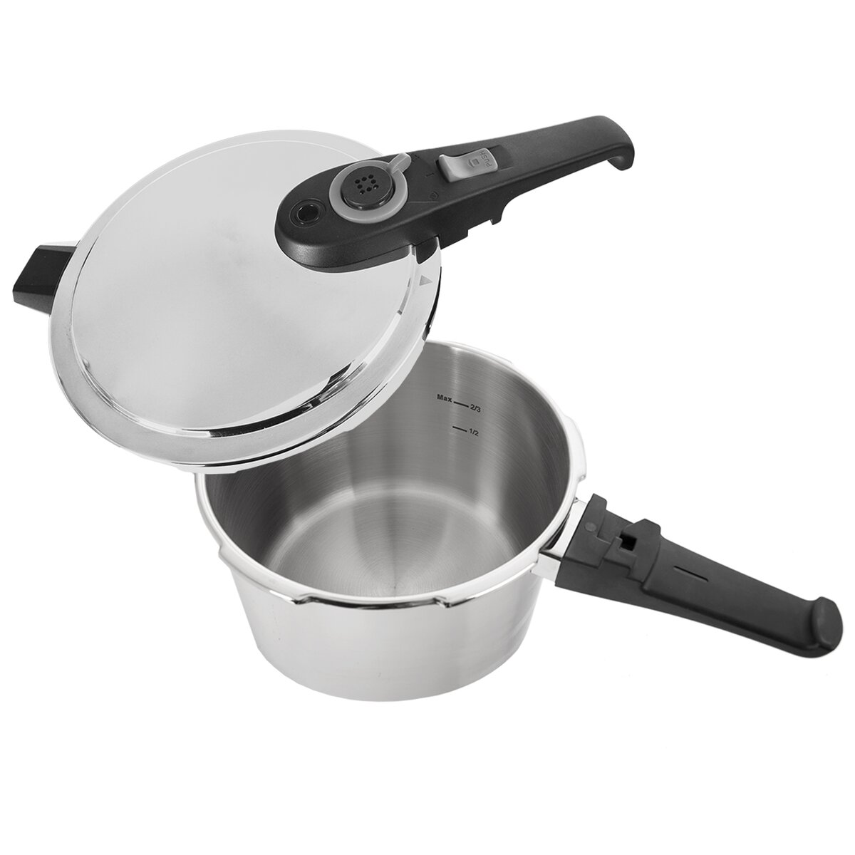 - pokrievka s rukoväťou a s bajonetovým zatváraním pre bezpečné uzavretie hrnca bez potreby sily