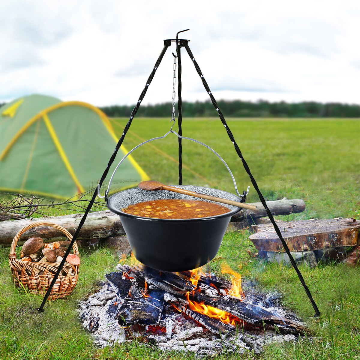Keď príde čas kempovania a varenia hubového gulášu alebo poriadnej polievky v kotlíku, budete potrebovať k jeho zaveseniu praktickú trojnožku.