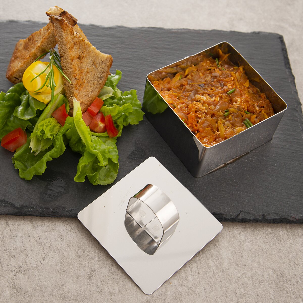 Štvorcové nerezové tvorítko môžete využiť pri vykrajovanie menších dezertov z upečeného korpusu, moderných zákuskov polievaných čokoládou, ovocím a krémom. Alebo si pripravte netradičné slané toasty s obľúbenými nátierkami.