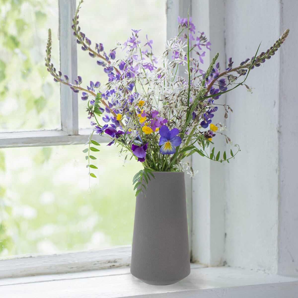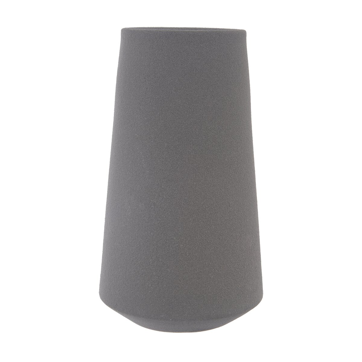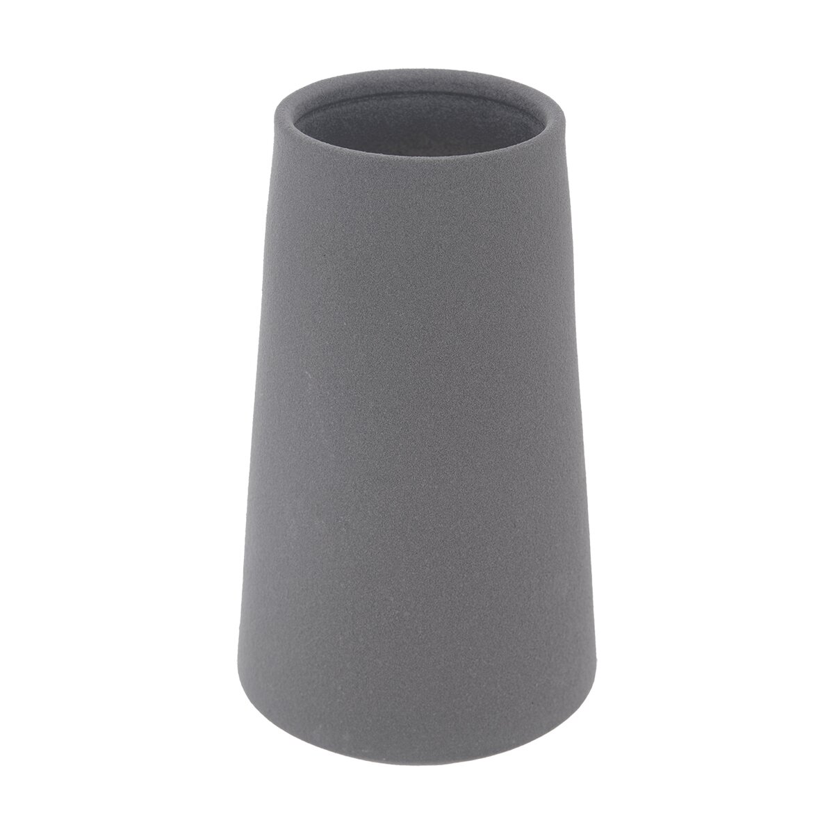 Priemer otvoru vázy v šedom odtieni je 8,5 cm, vo vnútri je glazúra, ktorá zaistí nepriepustnosť.