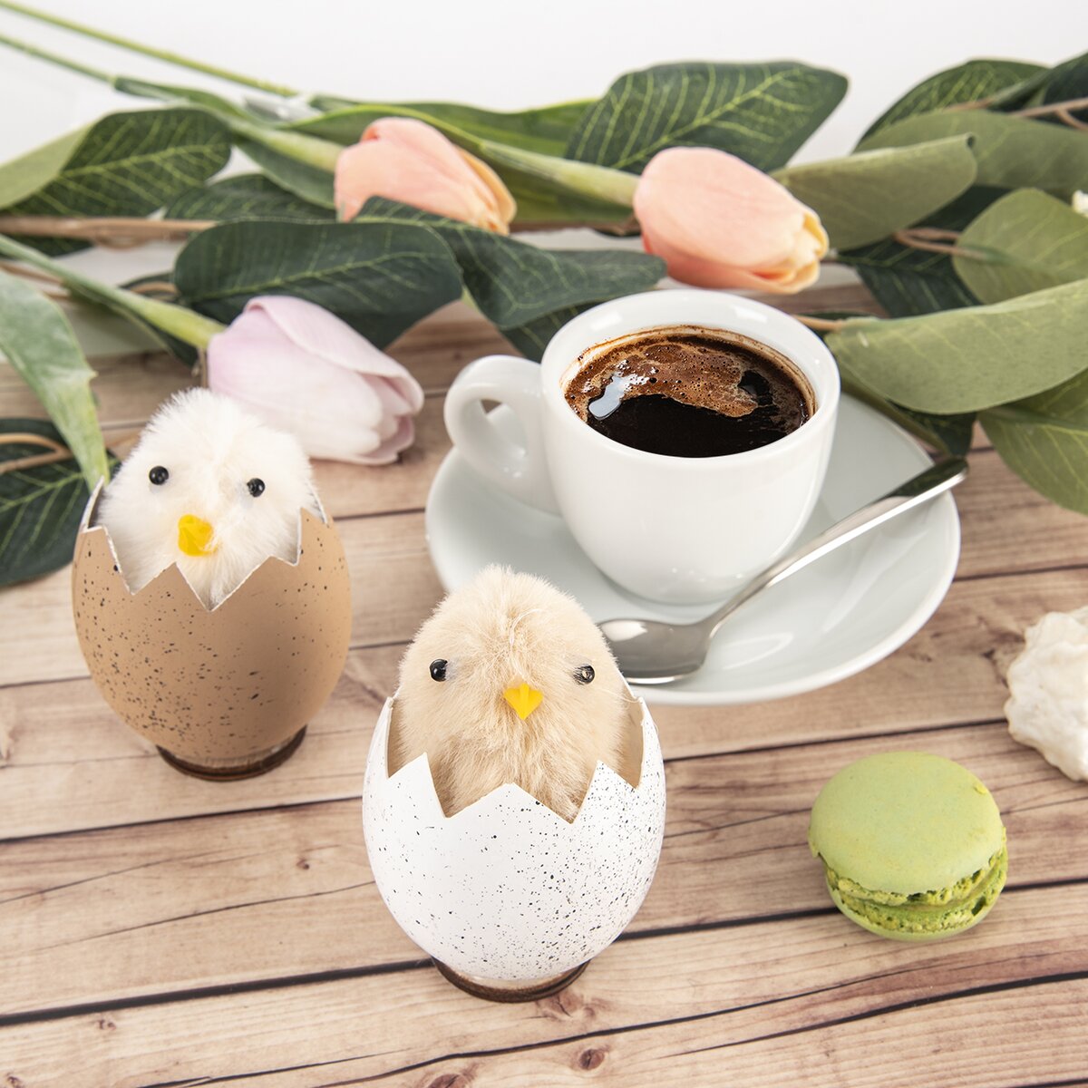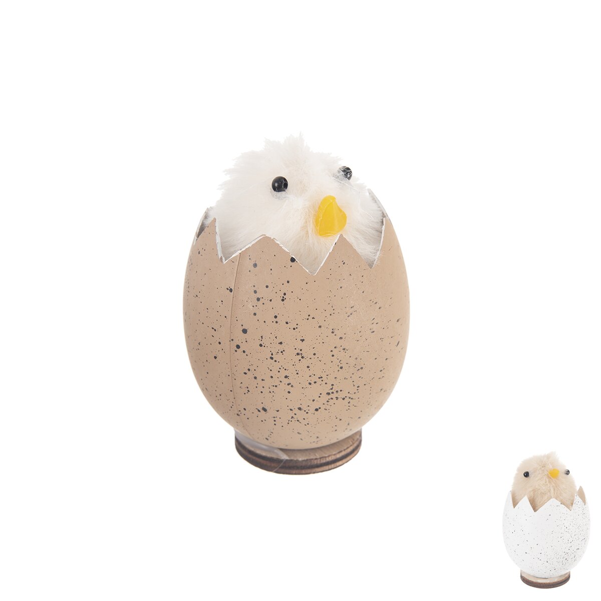 Na stole, medzi veľkonočnou väzbou alebo v jarnom venci sa bude pekne vynímať roztomilé kuriatko v škrupine. Je vyrobené z plastu PP, PE a je pre lepšiu stabilitu pripevnené na drevenej podložke. Stačí drobnosť a jarná pohoda, napríklad s dobrou kávou alebo veľkonočným baránkom, je tu.