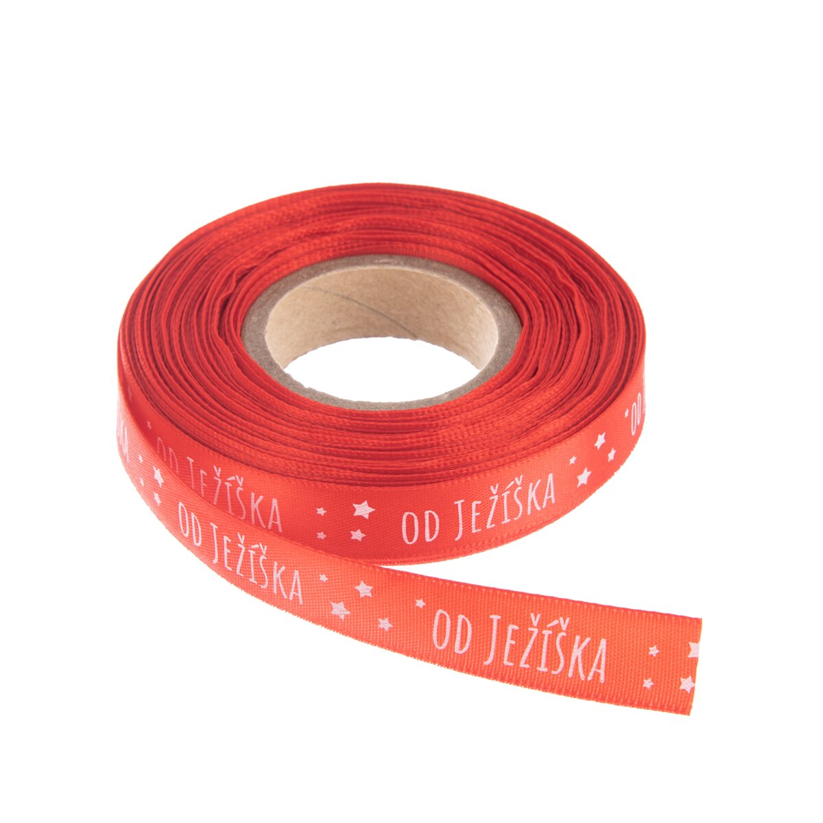 Kód produktu 823107Červená stuha s potlačou "OD JEŽÍŠKA" je určená na originálne balenie vianočných darčekov alebo na doplnenie najrôznejších vianočných dekorácií. Má dĺžku 25 m.