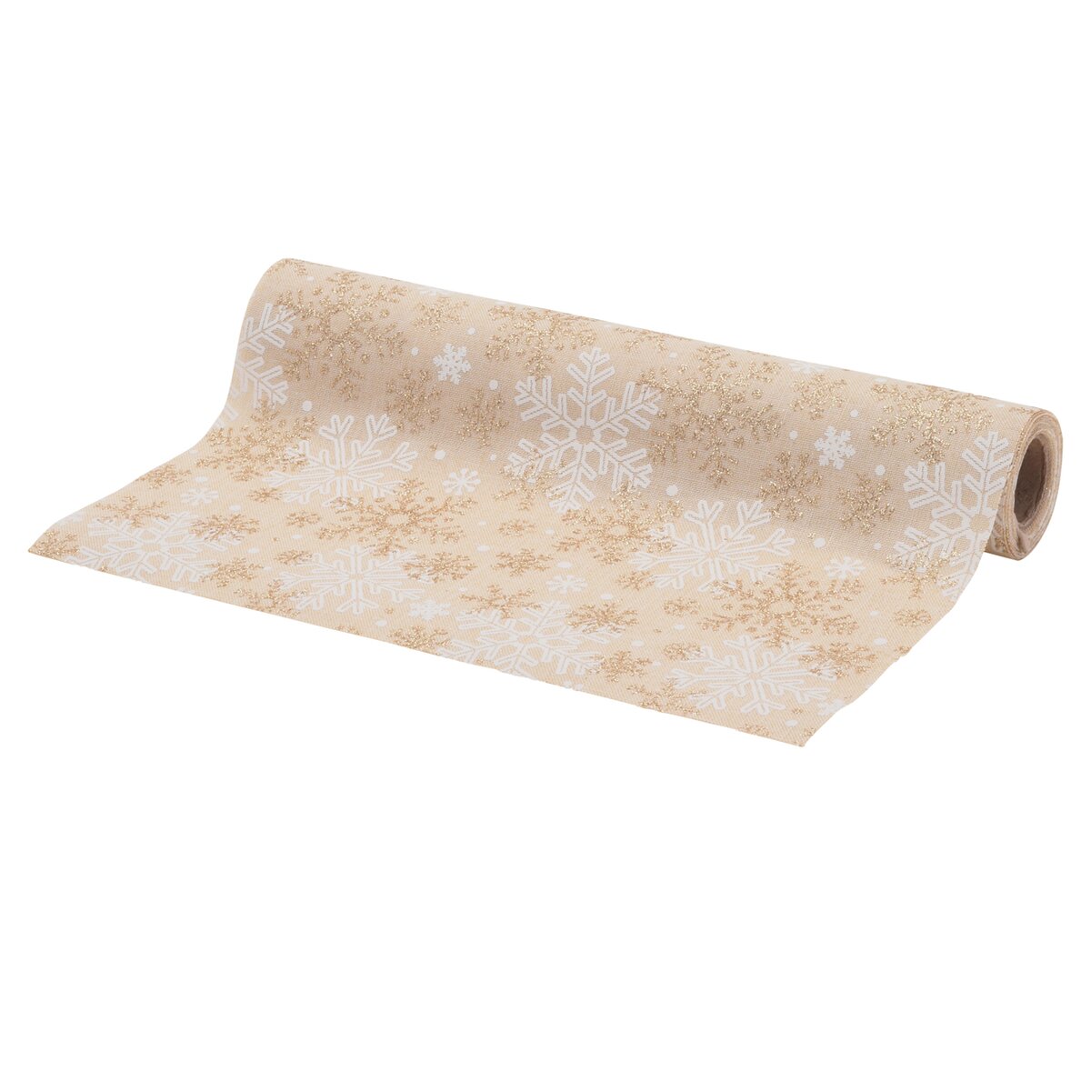 Viac informáciíKrásny behúň v teplých odtieňoch zlatej a bielej, s jemným zimným motívom vločiek, v rozmere 250x28 cm, je určený pre štýlové prestieranie sviatočného stola nielen v období Vianoc, ale aj pre dlhé zimné obdobie. Príjemná slávnostná farba tohto podlhovastého behúňa z polyesteru podčiarkne vaše stolovanie, a doplniť ho ďalším farebným akcentom sviečok a dekorácií v tónoch, ktoré sú zrovna trendy.