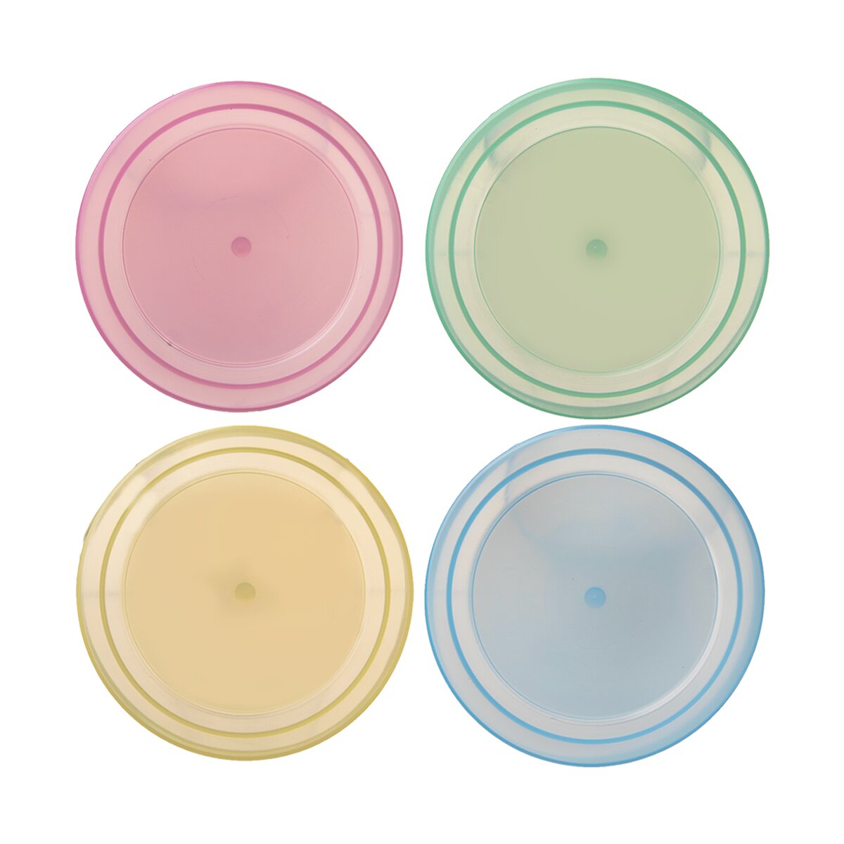 Kód produktu 151309Sada 4 kusov okrúhlych plastových viečok s priemerom 8 cm na zaváracie poháre OMNIA.