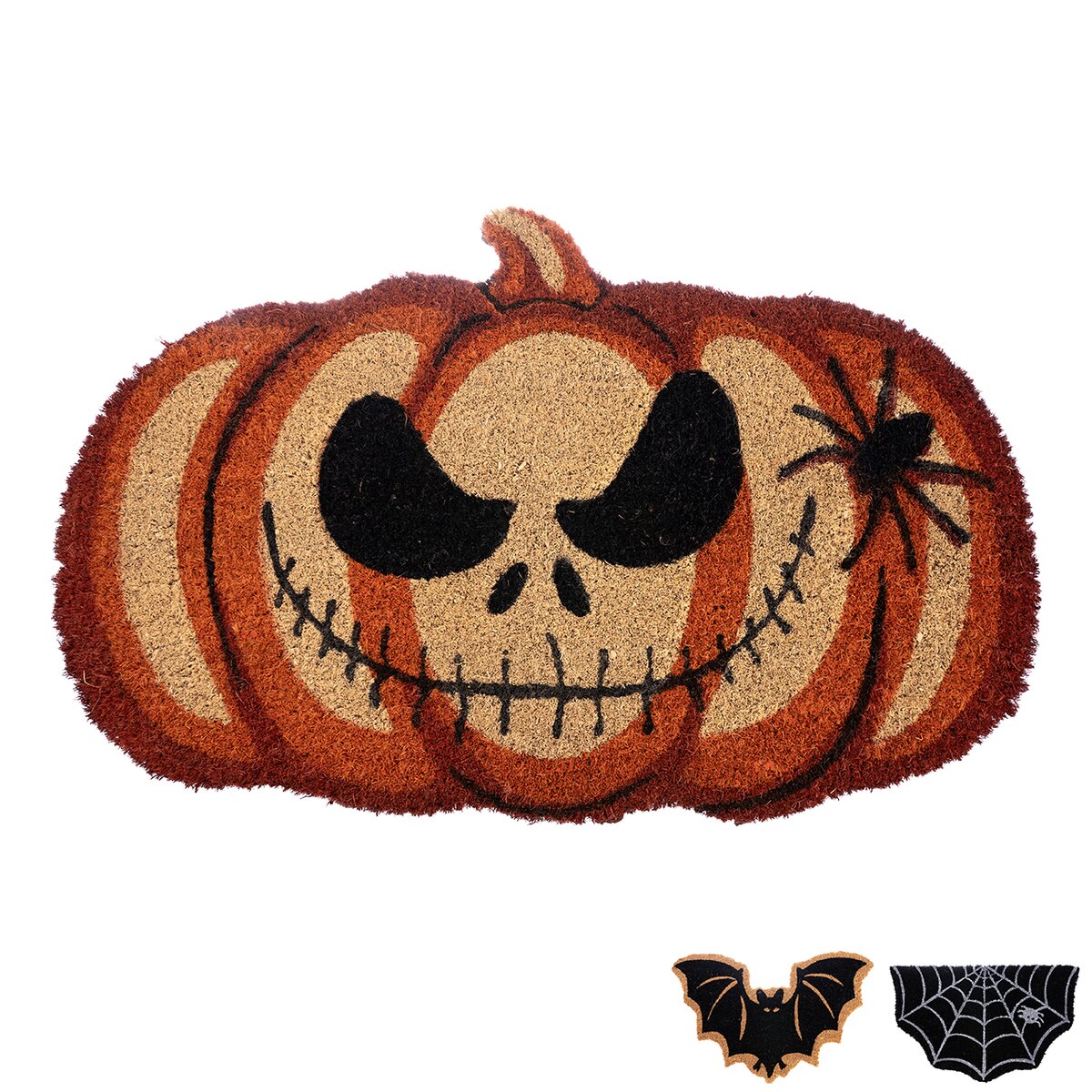 Kód produktu 530180Rohožka v tvare tekvice, netopiera a pavučiny je štýlovým doplnkom pre jesennú a halloweensku výzdobu. Výrazné obrysy zaujmú na prvý pohľad a zároveň plnia praktickú funkciu pri vstupe do vchodových dverí, na terasu, do bytu, chaty či zimnej záhrady. Materiál: 40% kokosové vlákno, 60% polyvinyl. Rozmery: netopier 59x38x1,5 cm, tekvica 59x37x1,5 cm, pavučina 58,5x39x1,5 cm.