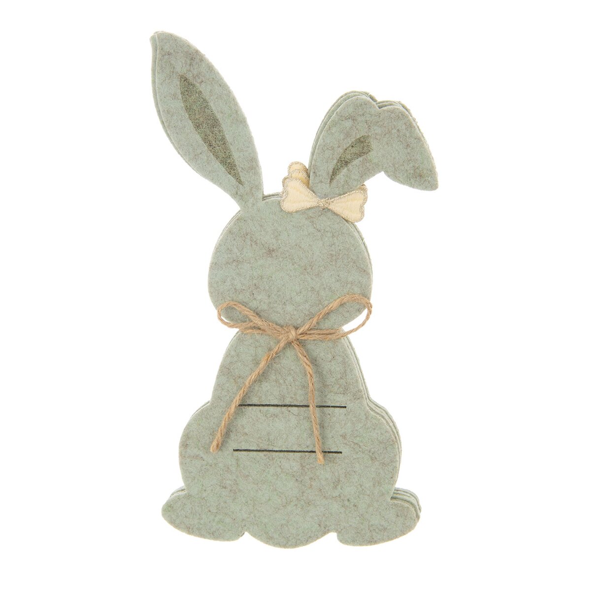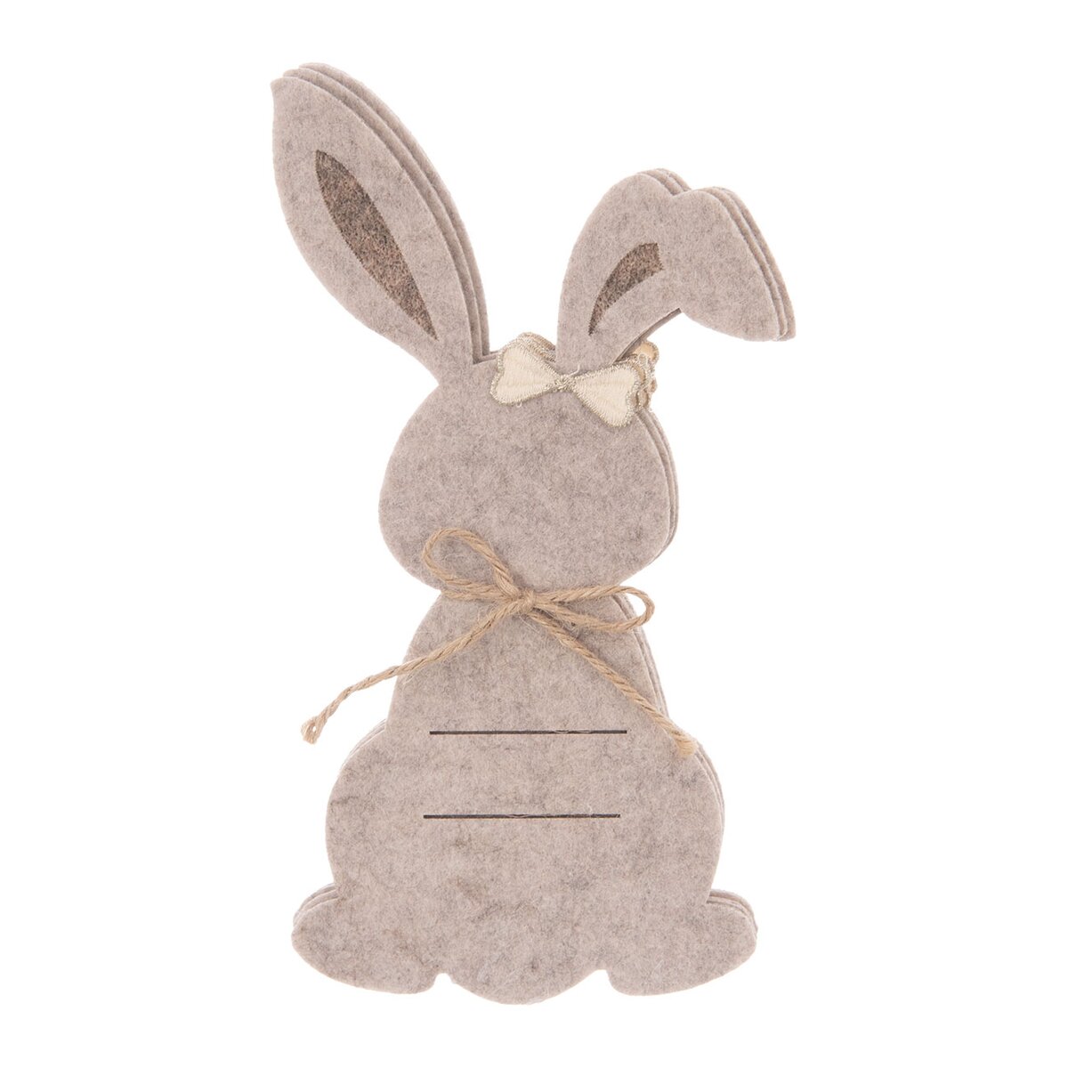 Kód produktu 728079Sada 4 kusov filcových vreciek v príjemnom tlmenom odtieni ozdobí prestretý stôl predovšetkým v čase Veľkej noci. Tvar zajačika a 2 preseknuté otvory umožnia jednoduché vloženie príborov.