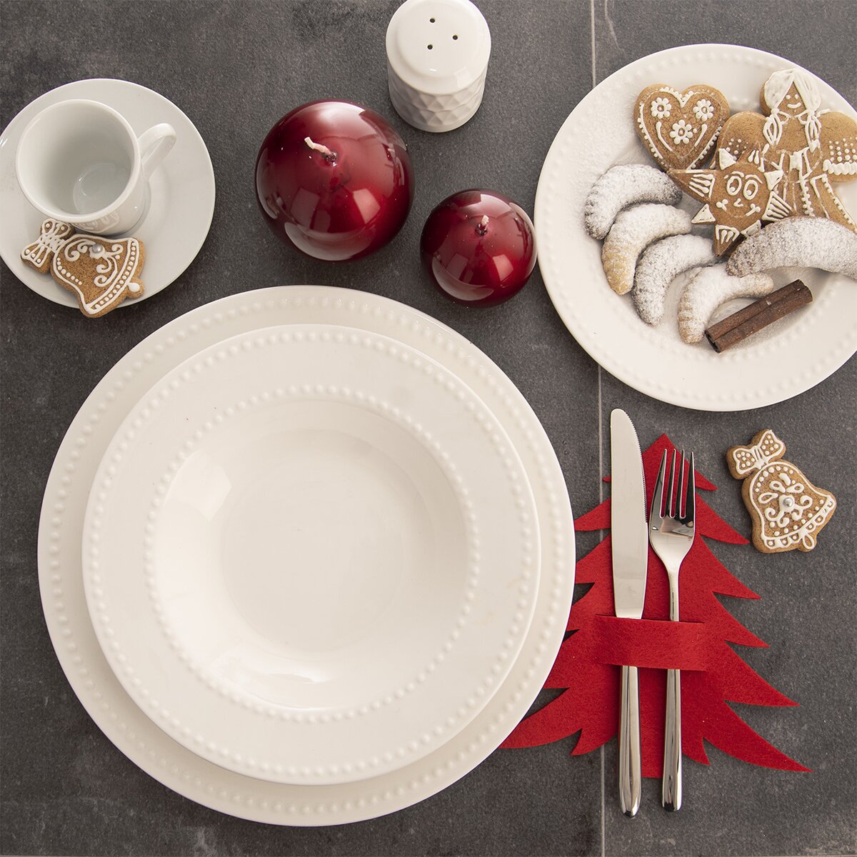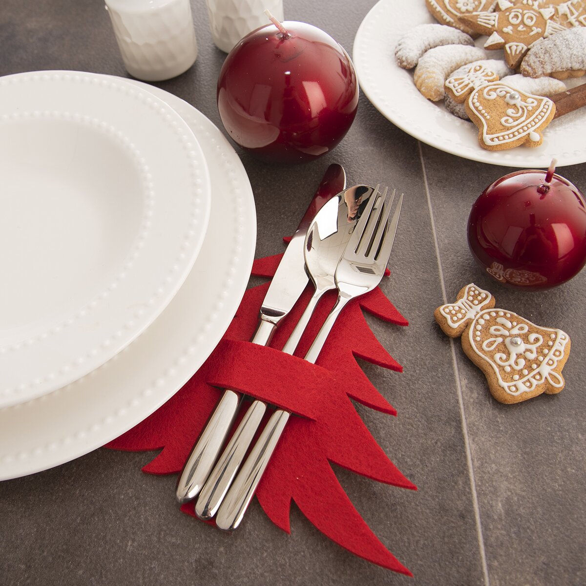 Navyše červená farba k vianočným sviatkom patrí, štedrovečerné menu alebo obed s rodinou na 1. či 2. sviatok vianočný dostane s týmito vreckami z filcu šmrnc.