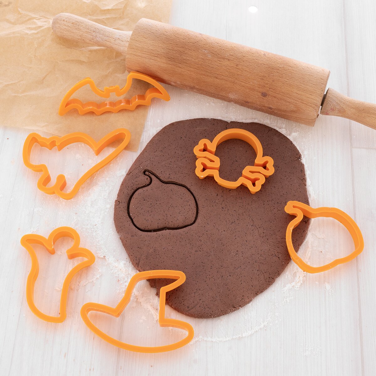 Viac informáciíPlastové vykrajovače v tradičných halloweenskych tvaroch (v tvare klobúka, mačky, ducha, lebky, netopiera a tekvice) sú ideálne na prípravu sladkých i slaných dobrôt počas Halloweenu. Hodi sa aj na fondán či marcipán. Sú skvelým pomocníkom pri pečení sušienok, perníčkov alebo pri zdobení tort.