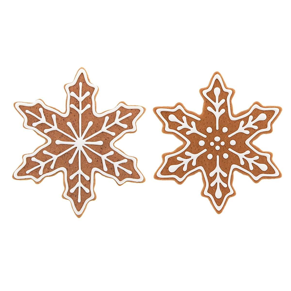 Perníčky stačí nakoniec ozdobiť bielkovou polevou, navyše každý môže byť originálny, veď aj skutočné snehové vločky sú každá svojím tvarom unikátne. Alebo ich postriekajte čokoládou, je možné tiež na vytvorenie reliéfu použiť dekoratívne valčeky a pečiatky z nášho sortimentu.