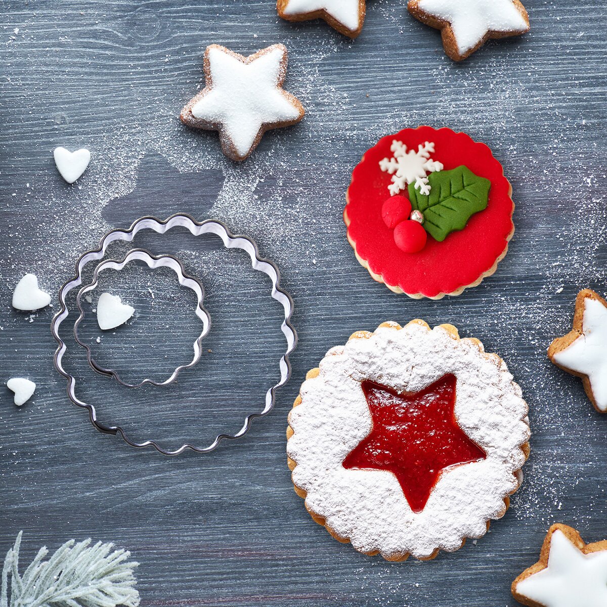 Vykrajovačky KVET môžete použiť samostatne alebo vo väčšom tvare vykrojiť menšou vykrajovačkou stred typický pre zlepované linecké koláčiky.