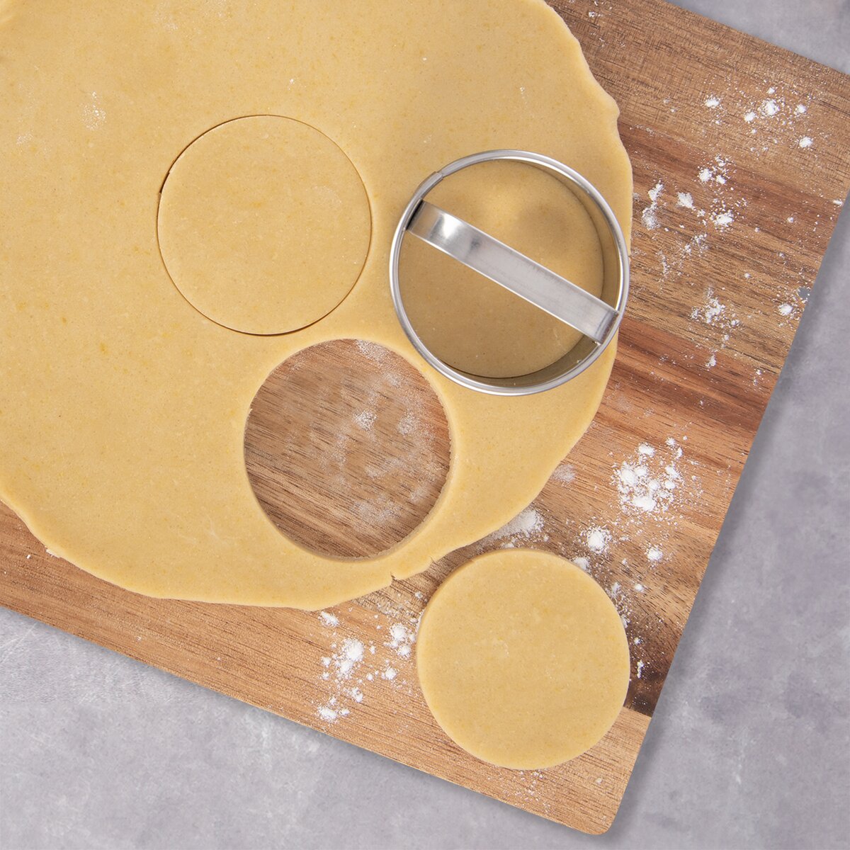 Viac informáciíVykrajovačka s úchytom sa výborne hodí na vykrajovanie rozvaľkaného cesta na koláče, sušienky, slané škvarkové pagáče atď. Z kysnutého cesta pohodlne vykrojíte šišky, ktoré necháte nakysnúť (zväčší sa na cca 7-8 cm) a môžete ich smažiť.