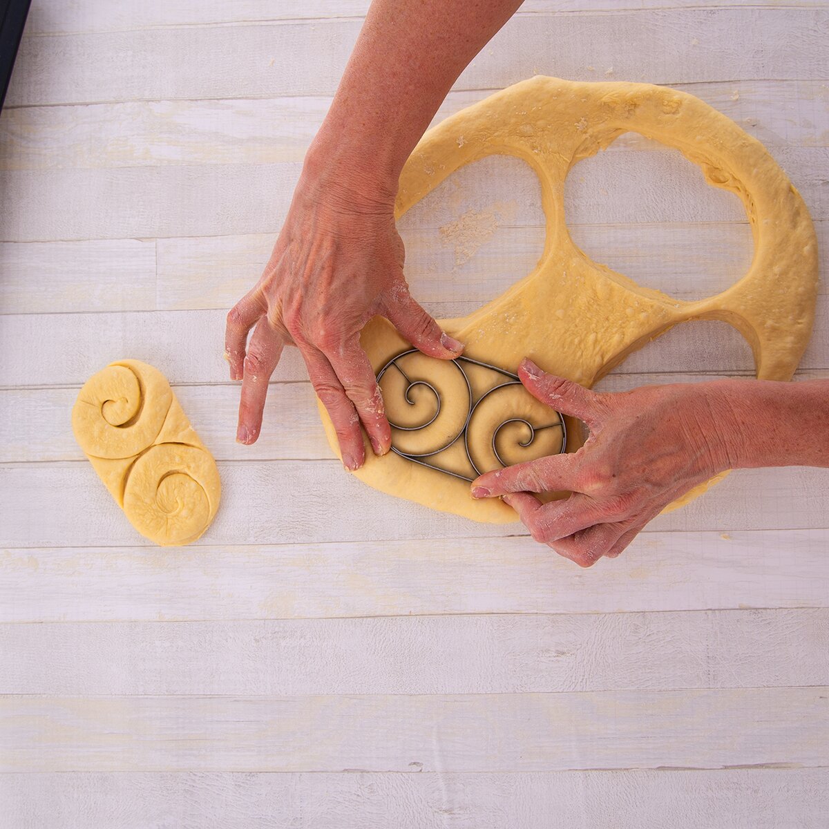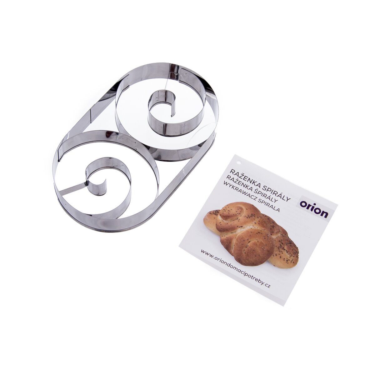 Vykrajovačka na raženku vám pomôže vytvoriť zaujímavý tvar slaného i sladkého pečiva. Z vyvaľkaného kysnutého cesta vykrojíte tvar, špirály sa prekroja cca 2 mm nad povrch podložky. Potom necháte cesto ešte nakysnúť a upečiete. Materiál: nerez. Rozmery: 13x7,5x2 cm. Recepty súčasťou.