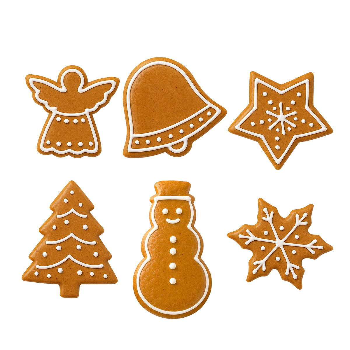 Kód produktu 132610Sada 6 rôznych vianočných tvarov - snehuliak, vločka, anjel, zvonček, hviezda a stromček na vykrajovanie perníčkov, sušienok aj na iné kreatívne práce.