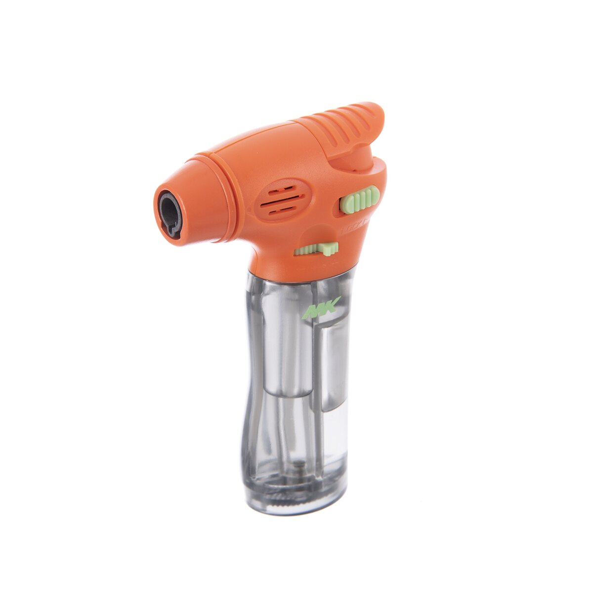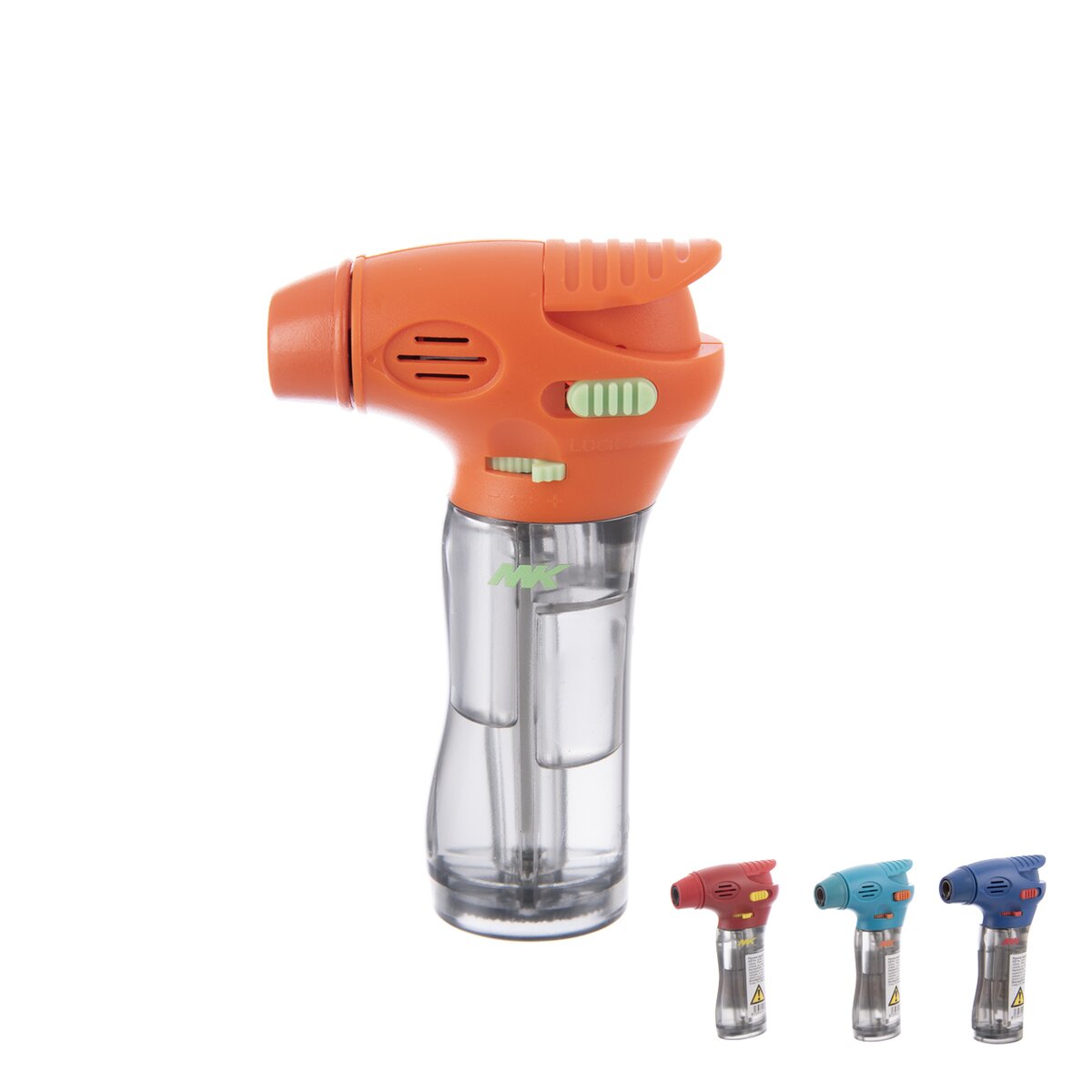 Je vyrobený z plastu a kovu, plameň zapálite stlačením tlačidla v hornej časti, kde je možné regulovať aj intenzitu plameňa. V spodnej časti je umiestnený plniaci otvor, takže je možné chýbajúci plyn jednoducho doplniť.