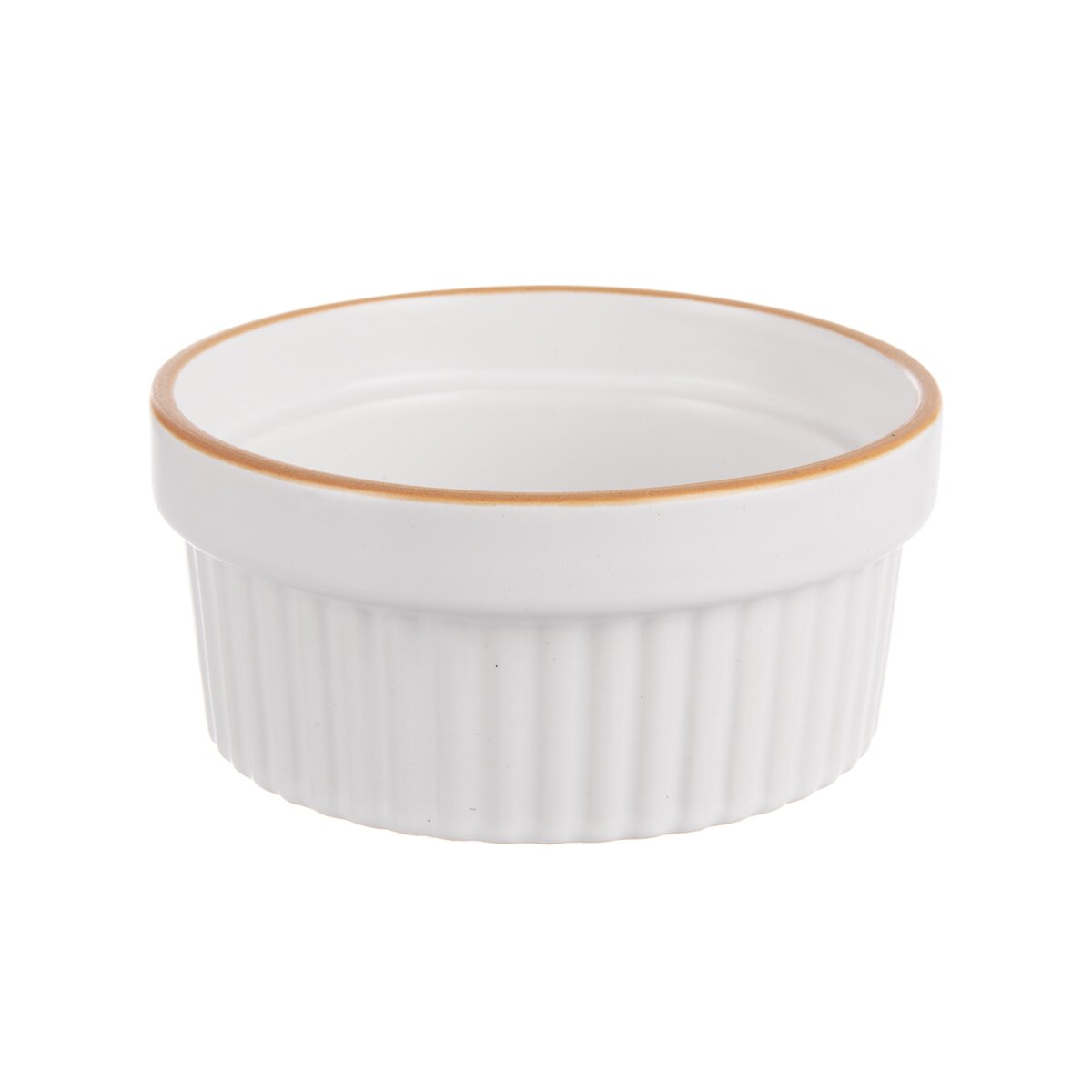 Biela keramická miska s hnedým lemom s priemerom 11 cm a s objemom 290 ml je určená na pečenie, zapekanie a servírovanie rôznych pokrmov, suflé, paštét, nátierok i dipov.