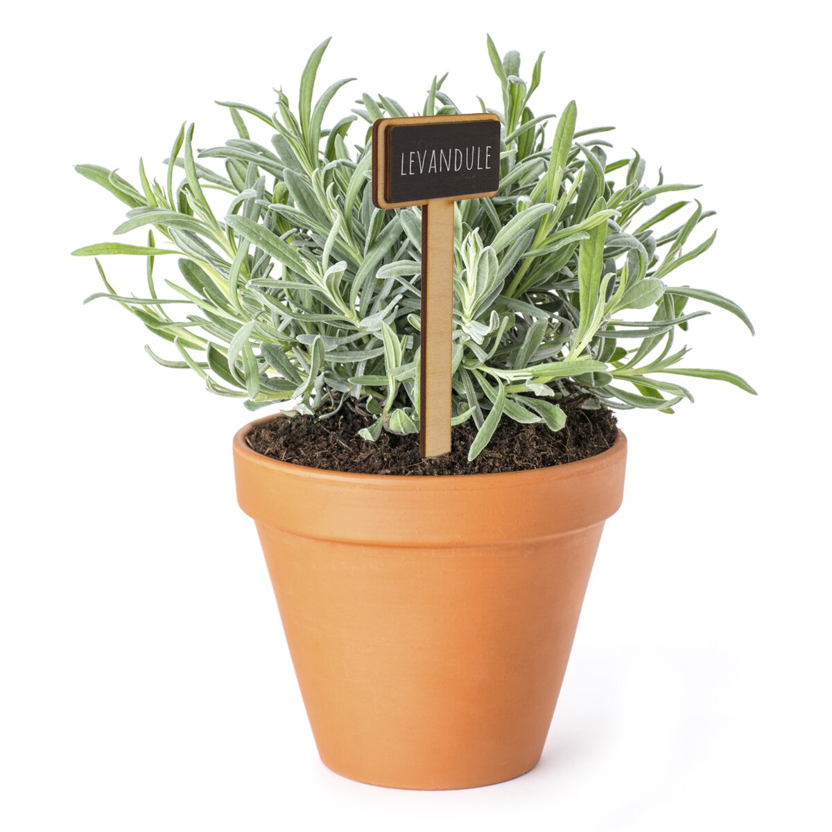 Kvetináč postavený na parapet, kuchynský ostrovček, do výklenku, na balkón či terasu, bude prehľadne označený touto decentnou menovkou, aby ste bylinky ľahko rozoznali.