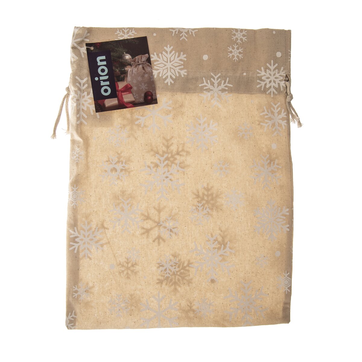 Látkové vrecko s dekorom vločiek je určené na uloženie darčekov, napr. originálnych hrnčekov, sviečok, kozmetiky alebo na tzv. mäkké darčeky, ktoré sa zle balia do baliaceho papiera. A na rozdiel od papiera ho možno používať opakovane.