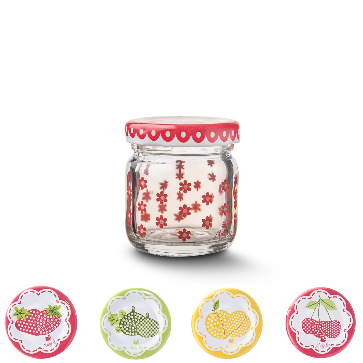 Kód produktu 129709Okrúhly zavárací pohár s potlačou a viečkom so štýlovým dekorom, s objemom 40 ml. Ideálne pre uloženie korenia, zaváranie pečeného čaju, pesta a iných pochutín.