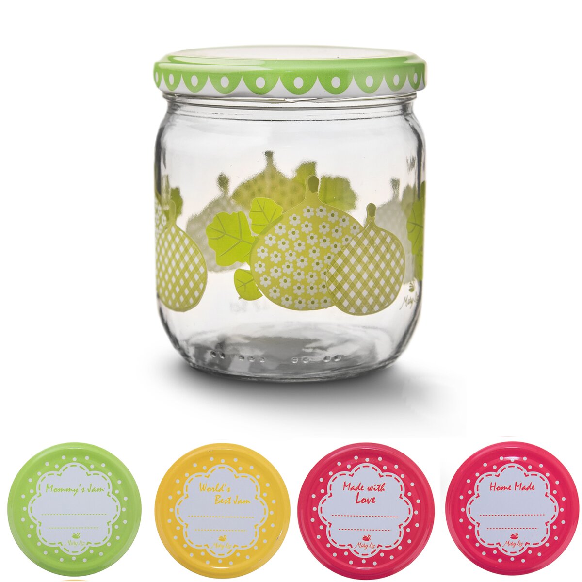 Kód produktu 129710Okrúhly zavárací pohár s potlačou, s objemom 425 ml, s farebným viečkom na závit ideálnym k popisu doby plnenia pod. Ideálny na zaváranie kompótov z drobnejšieho ovocia, marmelád, čalamád i paštét.