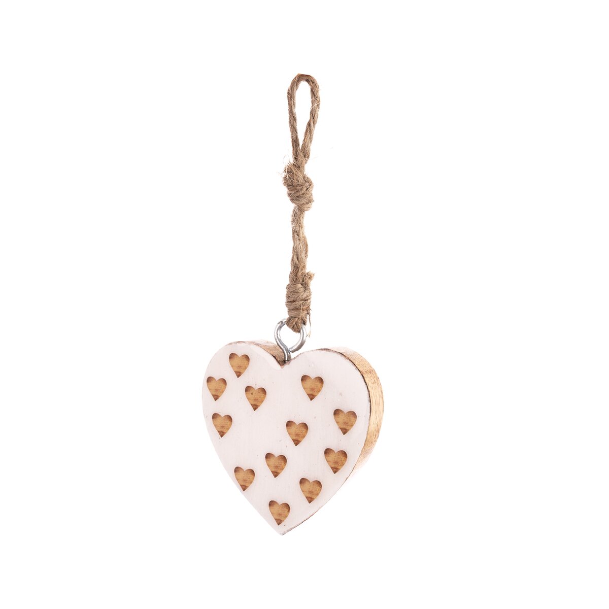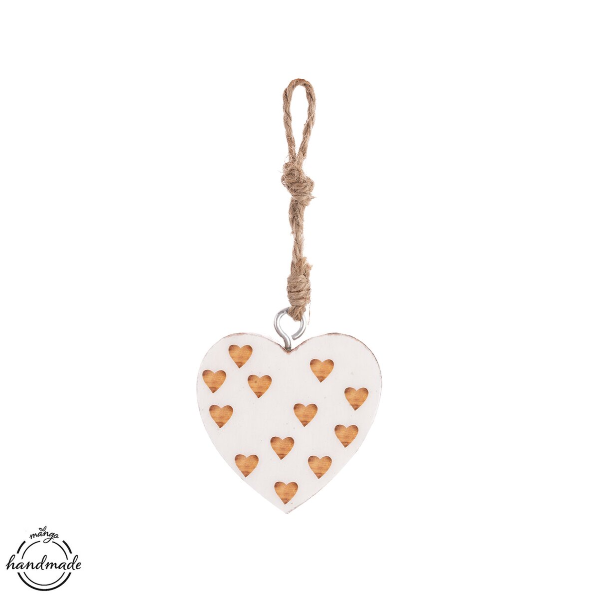 Kód produktu 351907Krásna dekorácia srdca z mangového dreva je štýlovým doplnkom, ktorý zaujme na prvý pohľad a zároveň poteší aj ako vkusný darček. Vďaka ručnej výrobe má každý kus svoj originálny charakter. Dekoráciu je možné zavesiť na háčik na stenu, na dvere, ale aj na vianočný stromček, takže ju využijete pri rôznych príležitostiach po celý rok. Materiál: mangové drevo, kov, juta, enamel (farba). Rozmery: š. 7 cm, v. 7,5 cm.