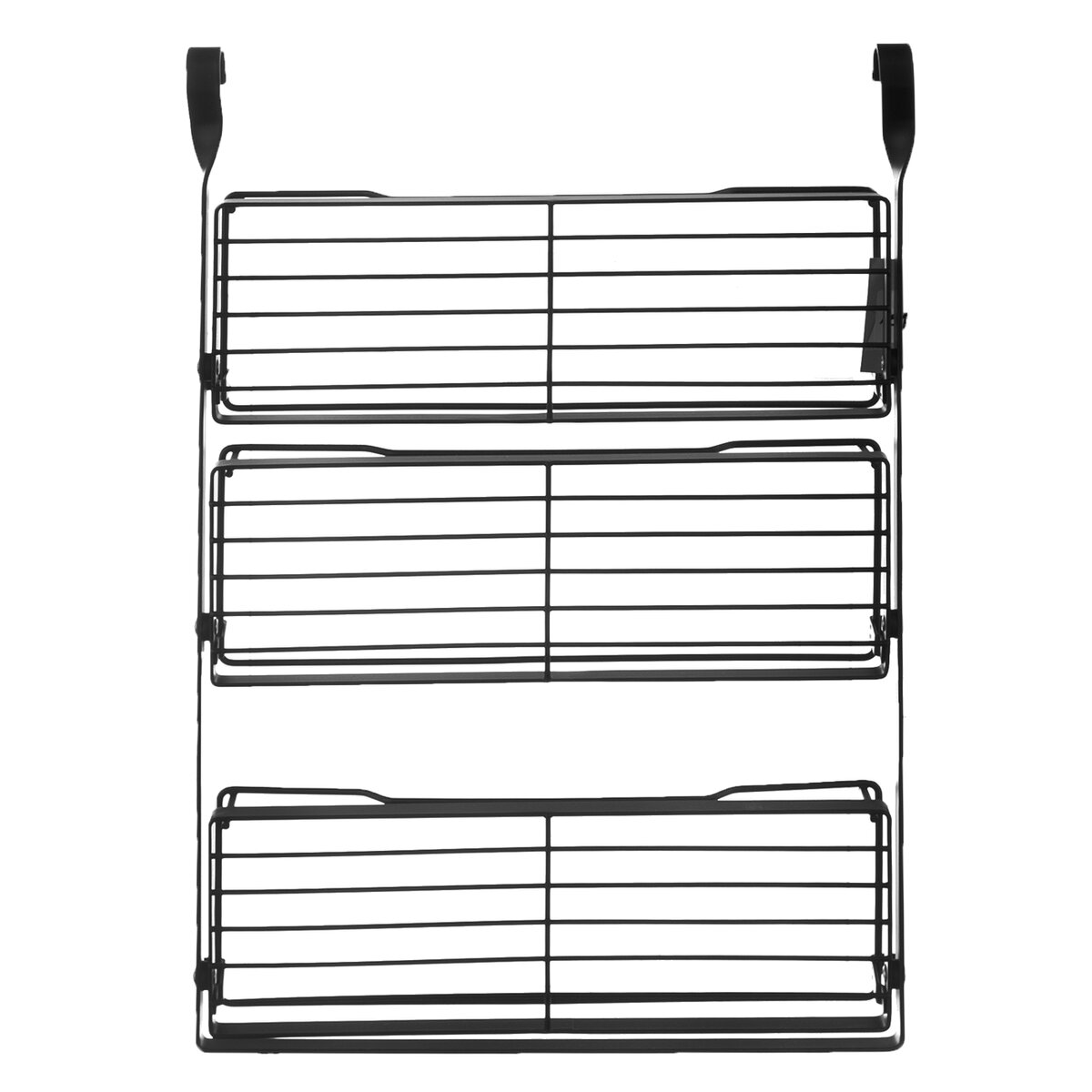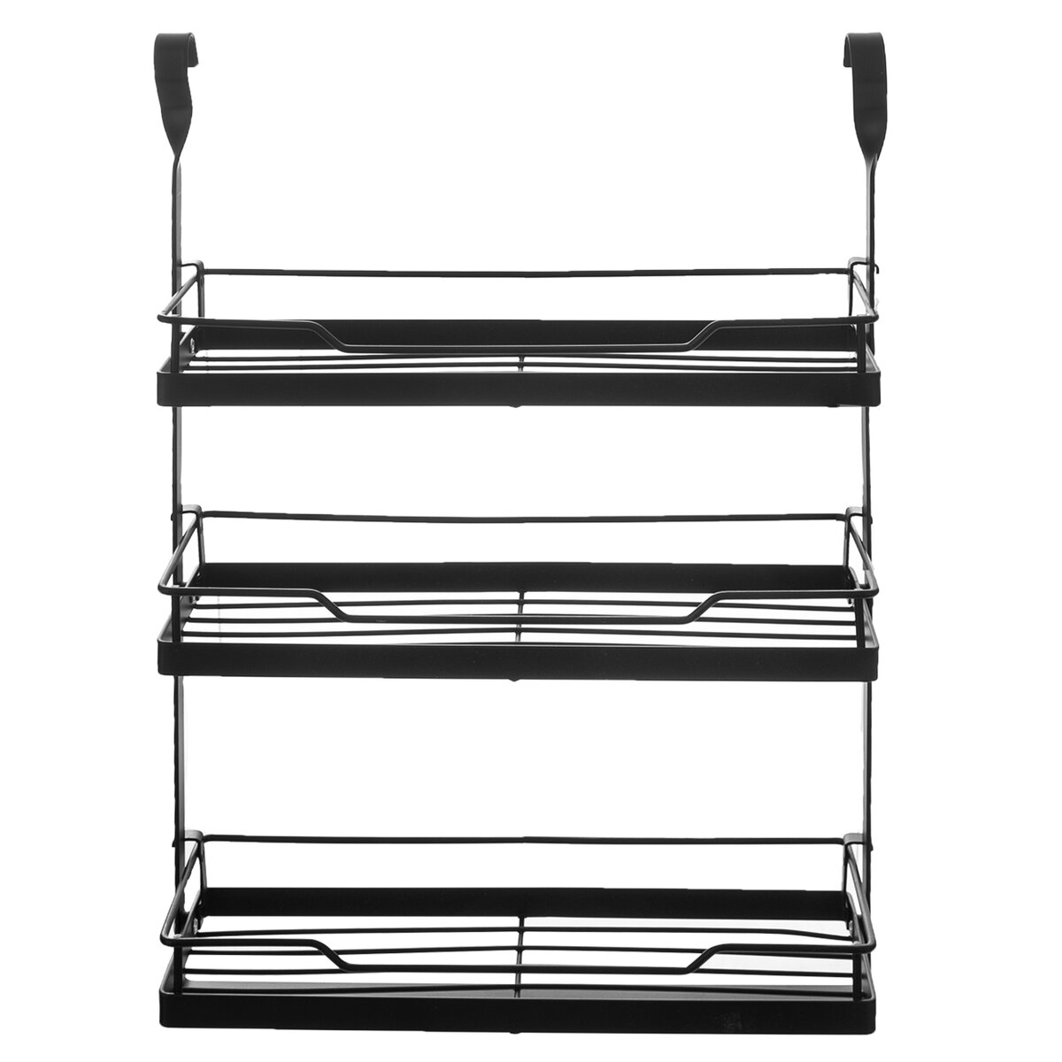 Závesnú 3 poschodovú čiernu poličku umiestnite pomocou háčikov v jej hornej časti na závesný kuchynský systém. Môžete ju využiť na odloženie koreničiek, dochucovadiel alebo rôznych predmetov – kuchárky, zošitov s receptami, kvetináčov s bylinkami.