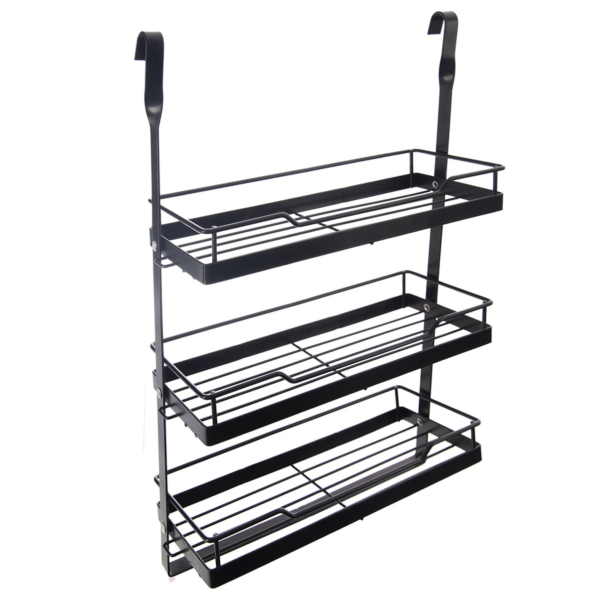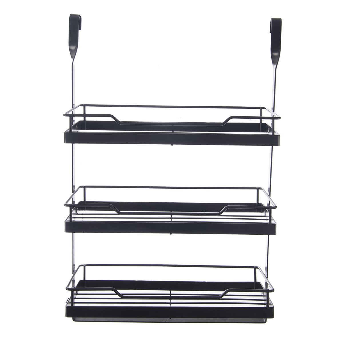 Závesnú 3poschodovú čiernu poličku umiestnite pomocou háčikov v jej hornej časti na závesný kuchynský systém alebo lištu. Môžete ju využiť na odloženie koreničiek, dochucovadiel alebo rôznych predmetov – kuchárky, zošitov s receptami, kvetináčov s bylinkami aj kávovej súpravy.