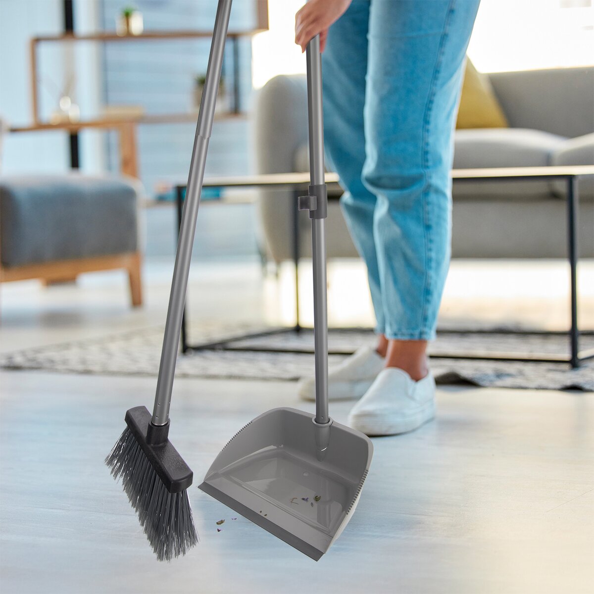 Kód produktu 711853Sada sklopnej lopatky a metly so syntetickými štetinami je opatrená dlhšími rukoväťami, ktoré pomôžu s upratovaním bez zbytočného ohýbania.