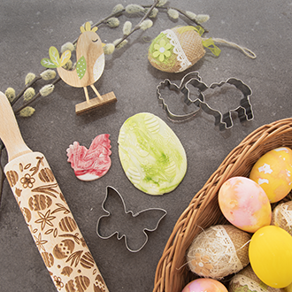Aby ste si uľahčili prácu, vyskúšajte embosované valčeky, pečiatky a vykrajovačky jarných a veľkonočných tvarov.