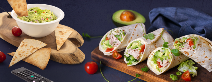 Malé trojuholníčky je možné kúpiť už hotové v sáčku, prečo si ale neurobiť obmenu. Stačí tortilly ľahko streknúť olejom v spreji, nakrájať na menšie trojuholníčky, ako keď sa krája pizza. Posypané korením ich vložte na plech do rúry na 5-10 minút. Pozor, je to rýchlovka, po upečení budú chrumkavé ako chipsy. K nim sa hodia rôzne salsy, obľúbené guacamole z avokáda alebo smotanový dip s koriandrom. Tak si chrumknite a fandite.