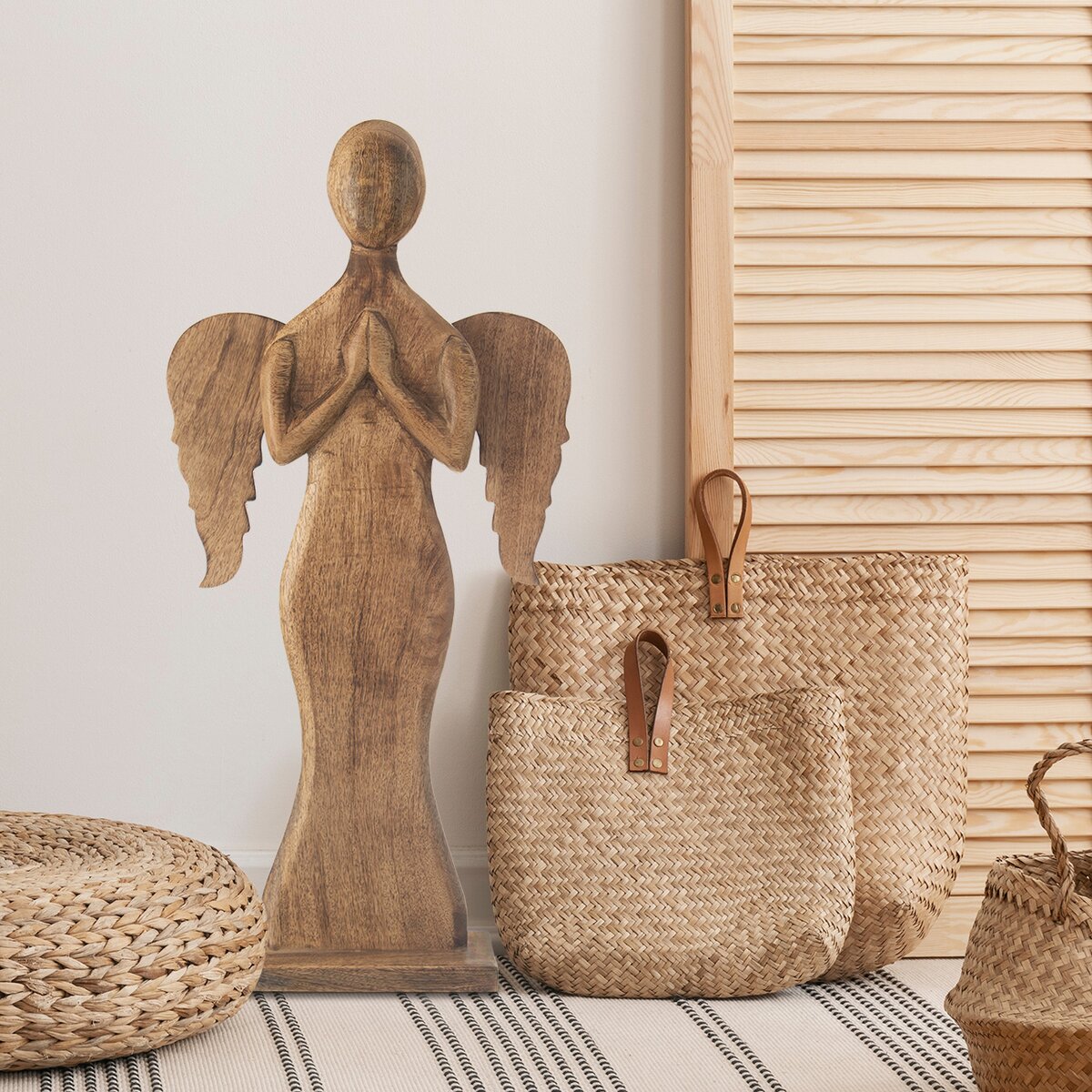 Väčší anjel z mangového dreva je štýlovou dekoráciou aj krásnym darčekom. Mangové drevo má typickú, výraznú kresbu a krásnu farbu. Unikátna kresba každého kusu očarí milovníkov dreva, či už preferujú minimalizmus, ktorý takéto prírodné prvky v interiéri trochu zútulnia, alebo vyznávačov rustikálneho, hygge štýlu.