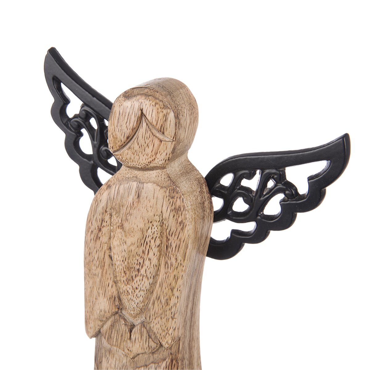Kód produktu 351856Dekorácia ANJEL s kovovými krídlami ozdobí vašu domácnosť nielen v období Vianoc, využiť ju môžete po celý rok. Vhodná tiež ako darček. Materiál: dekoratívne mangové drevo, kov. Rozmery: š. 14 cm, v. 34,5 cm.