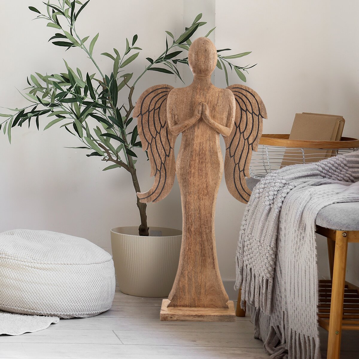 Kód produktu 351860Dekorácia ANJEL so zopnutými rukami a tvarovanými krídlami doplnenými čiernou linkou ozdobí vašu domácnosť nielen v období Vianoc, využiť ju môžete po celý rok. Prináša do vášho domova kúzelnú atmosféru, harmóniu a pohodu. Vhodná aj ako darček. Materiál: dekoratívne mangové drevo. Rozmery: š. 36,5 cm, v. 77,5 cm.