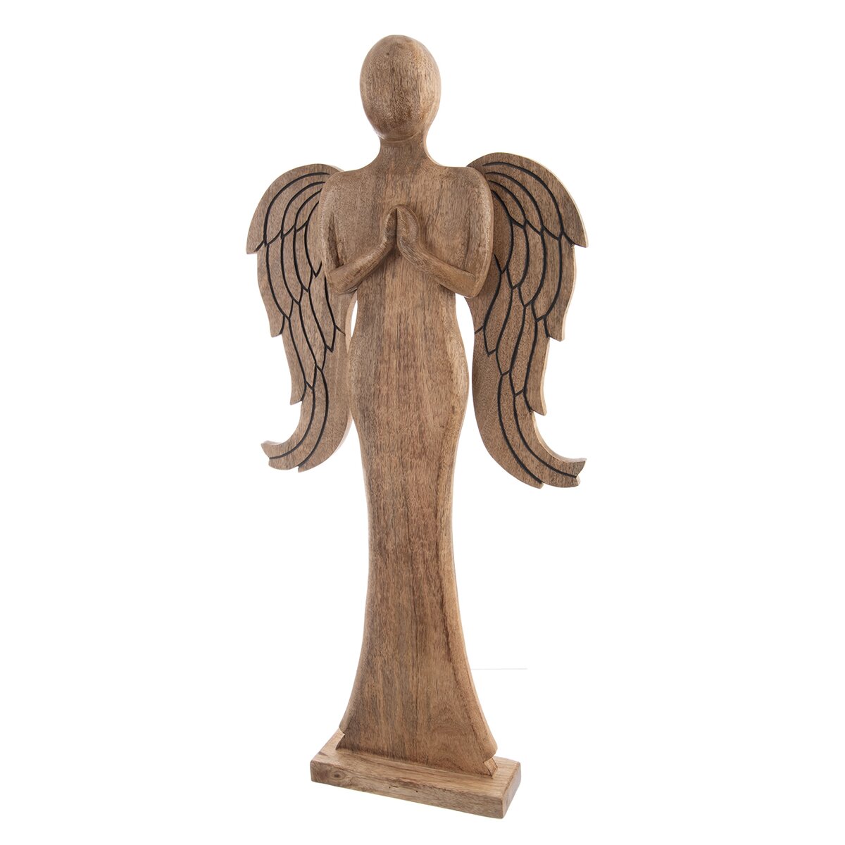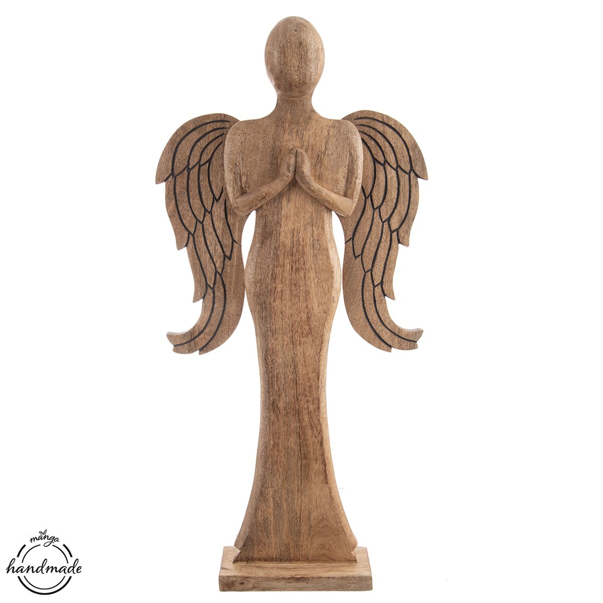 Kód produktu 351861Dekorácia ANJEL so zopnutými rukami a tvarovanými krídlami doplnenými čiernou linkou ozdobí vašu domácnosť nielen v období Vianoc, využiť ju môžete po celý rok. Prináša do vášho domova kúzelnú atmosféru, harmóniu a pohodu. Vhodná aj ako darček. Materiál: dekoratívne mangové drevo. Rozmery: š. 55,5 cm, v. 110 cm.