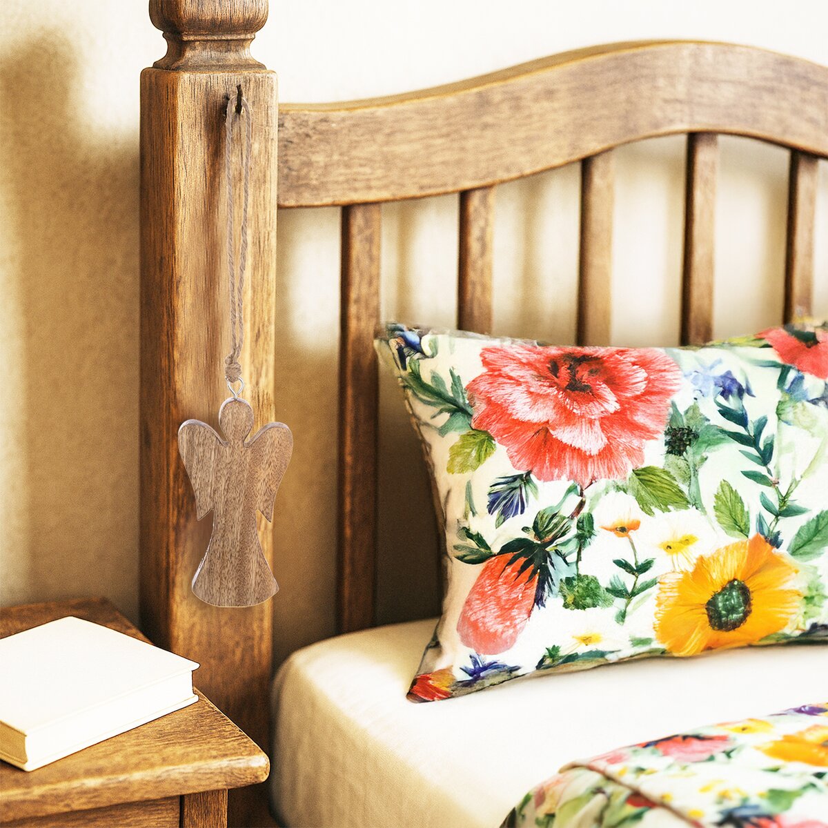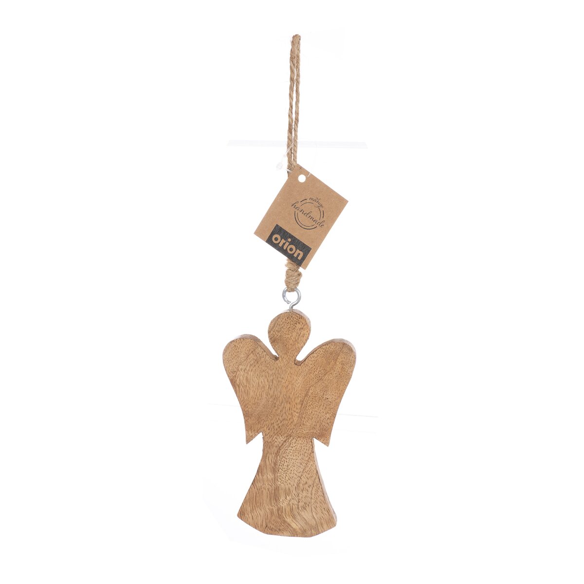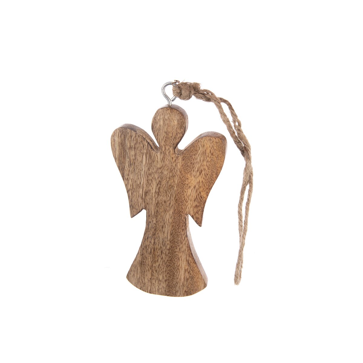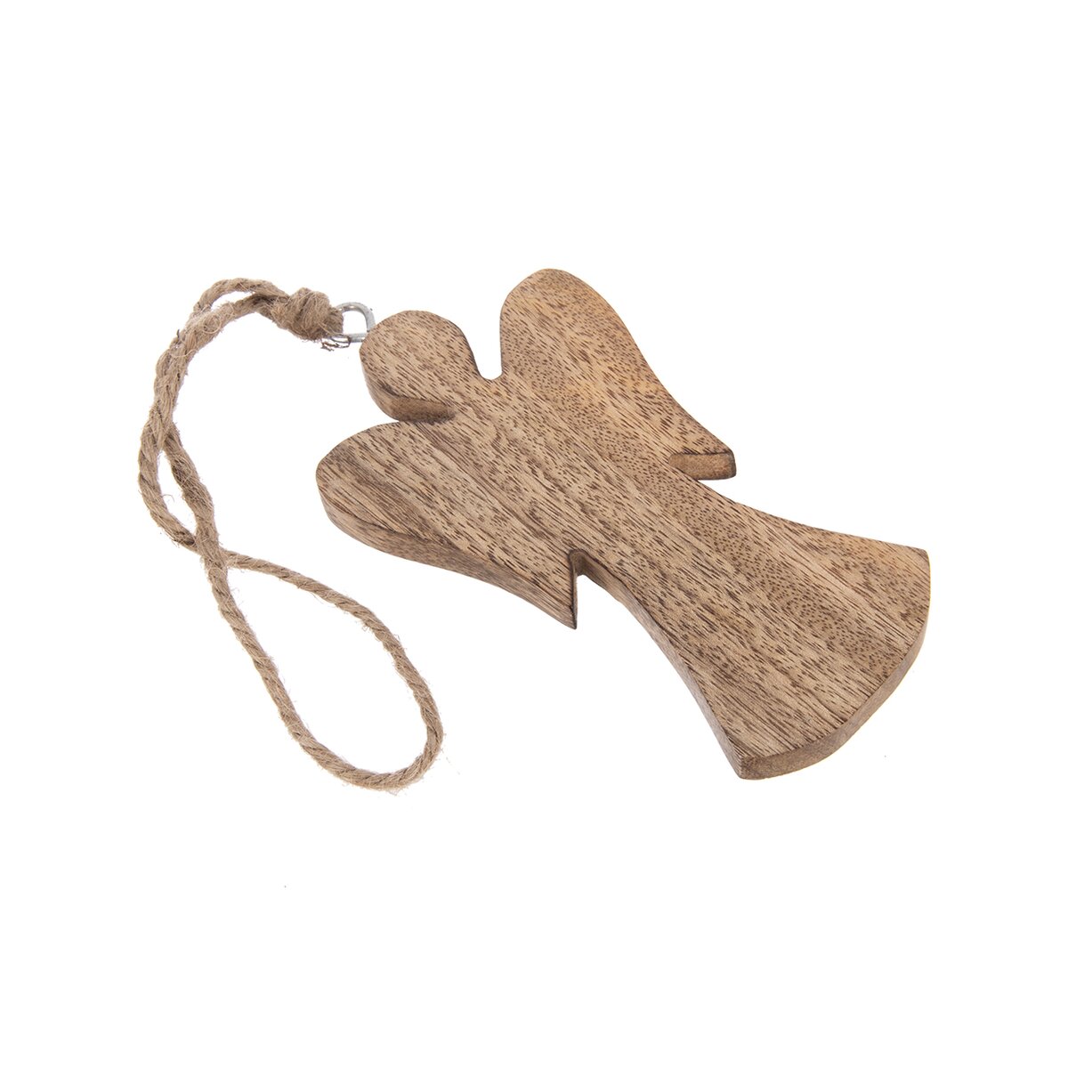 Kód produktu 351873Dekorácia ANJEL na zavesenie ozdobí vašu domácnosť nielen v období Vianoc, využiť ju môžete po celý rok. Vhodná tiež ako darček. Materiál: mangové drevo, kov, juta. Rozmery: š. 8,2 cm, v. 14,7 cm, v. s povrazom 35 cm.