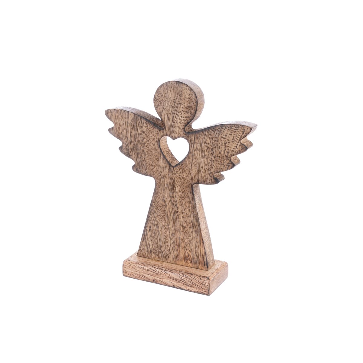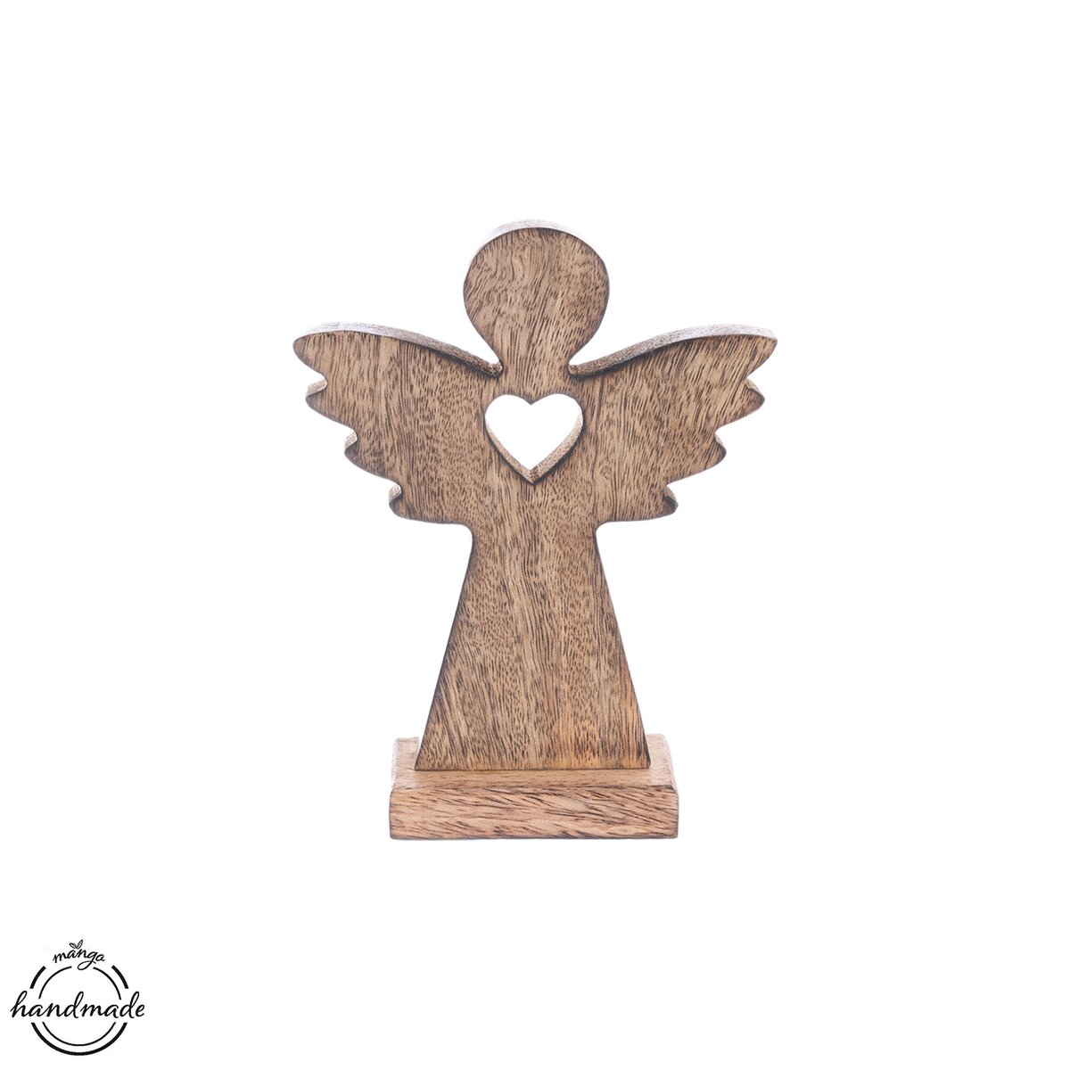Dekorácia ANJEL so srdcom ozdobí vašu domácnosť nielen v období Vianoc, využiť ju môžete po celý rok. Vhodná tiež ako darček. Materiál: dekoratívne mangové drevo. Rozmery: š. 12,5 cm, v. 16,5 cm.
