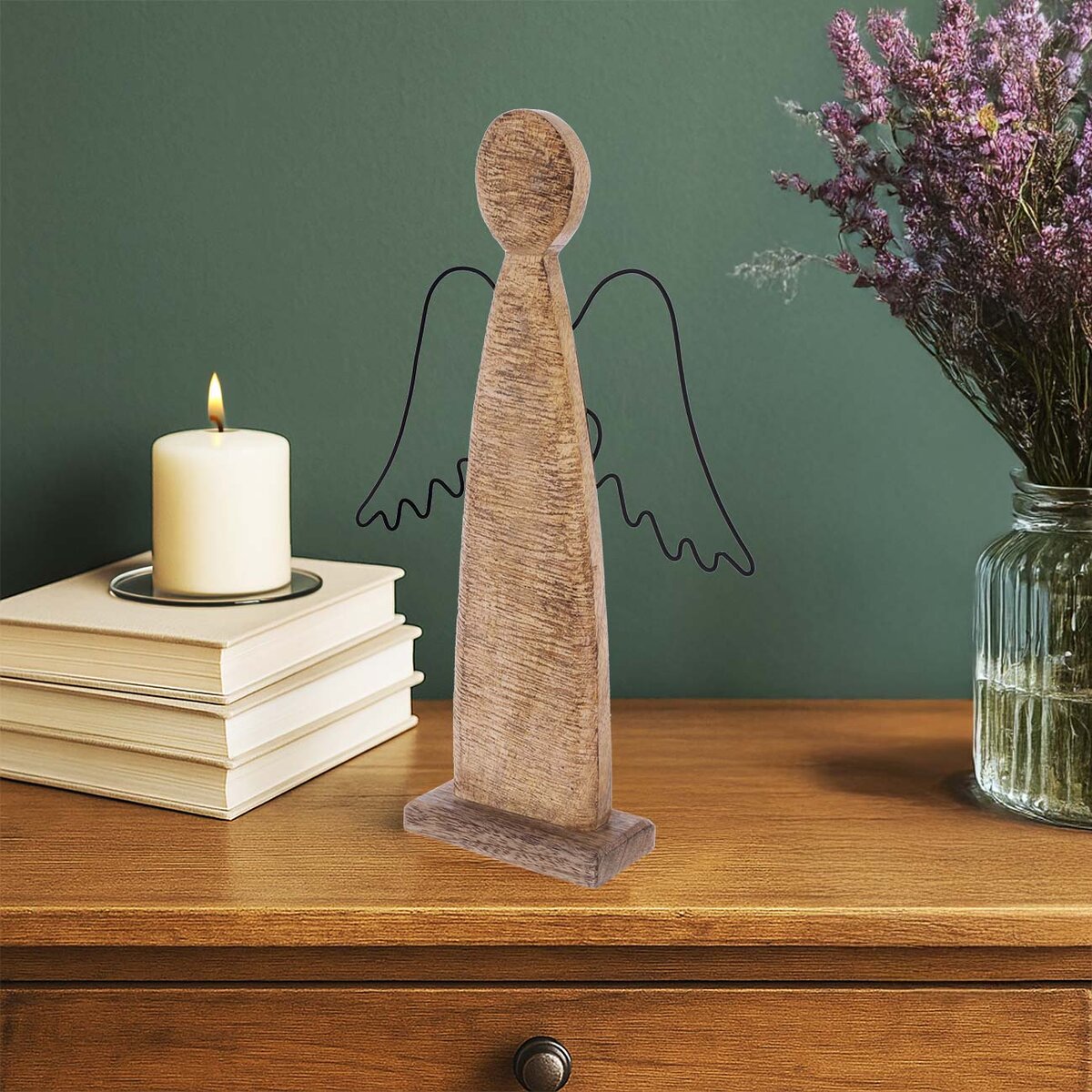 Kód produktu 351885Dekorácia ANJEL s kovovými krídlami ozdobí vašu domácnosť nielen v období Vianoc, využiť ju môžete po celý rok. Predná strana je štruktúrovaná. Vhodná tiež ako darček. Materiál: dekoratívne mangové drevo, kov. Rozmery: š. 20 cm, v. 31 cm.
