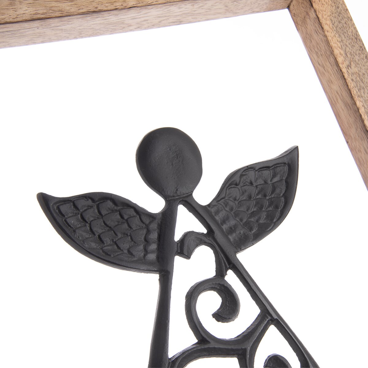 Kód produktu 351855Dekorácia rámčeka s kovovým anjelom ozdobí vašu domácnosť nielen v období Vianoc, využiť ju môžete po celý rok. Vhodná tiež ako darček. Materiál: dekoratívne mangové drevo, kov. Zavesenie na 2 závesy. Rozmery: 25,5x25,5x1,5 cm, v. anjela 13,5 cm.