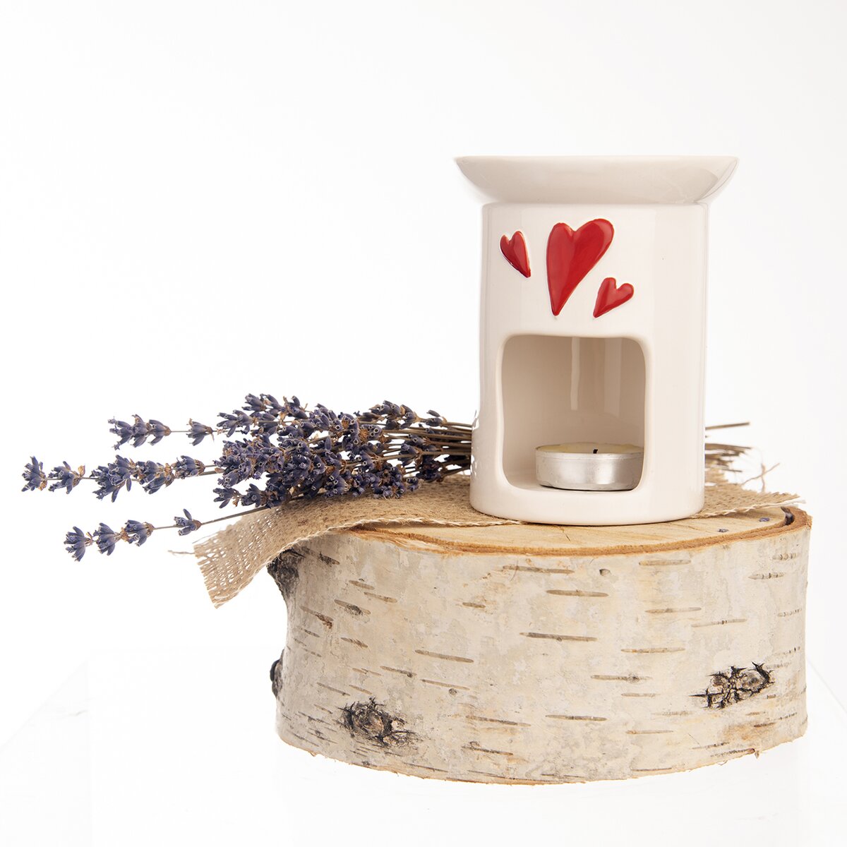 Kód produktu 822253Biela glazovaná aromalampa z keramiky - kameniny s drobnými srdiečkami prevonia domácnosť. Hore sa vloží vosk alebo sa do vody nakvapká trochu esenciálneho oleja. Čajová sviečka v dolnej časti uvoľní arómu použitej vône.
