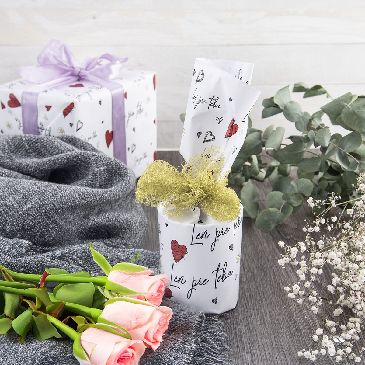 Kód produktu 842320Sada 2 hárkov baliacich papierov LEN PRE TEBA vo veľkosti 100x70 cm je určená na balenie darčekov.