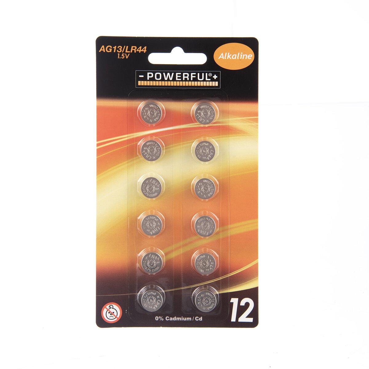 Kód produktu 870654Sada 12 kusov gombíkových batérií AG13/LR44 1,5 V je určená do ovládačov, hračiek, kalkulačiek, hodiniek a ďalších zariadení v domácnosti.