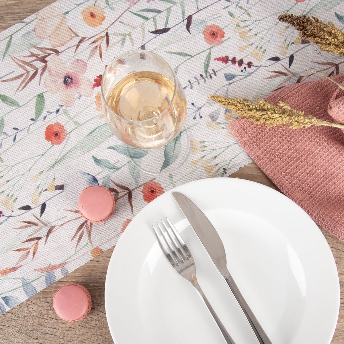 Kód produktu X14021Režný behúň s motívom kvetov na neutrálnom podklade je určený na stred stola. Ozdobí stôl v kuchyni, jedálni aj obývacej izbe aj na terase.